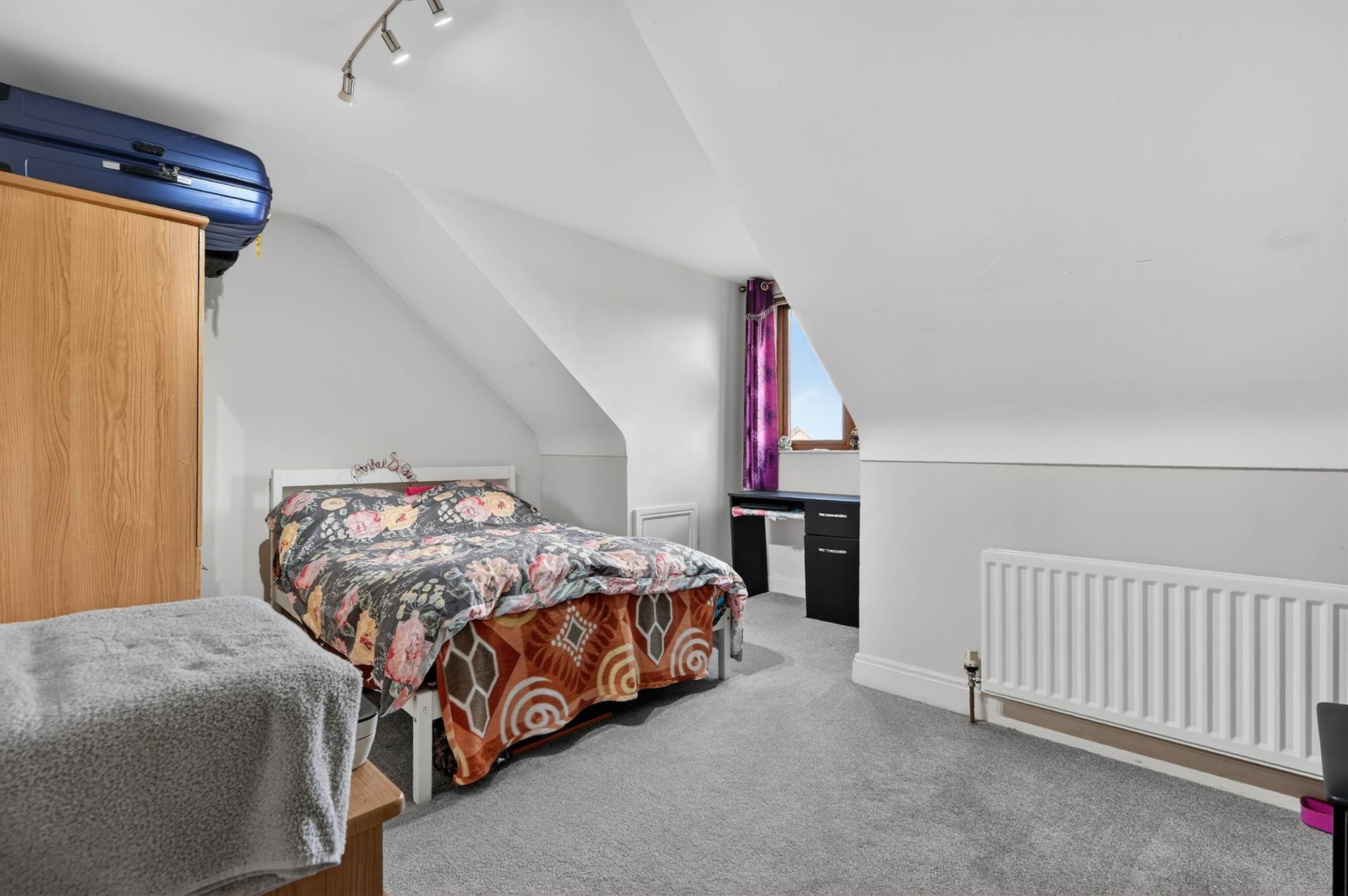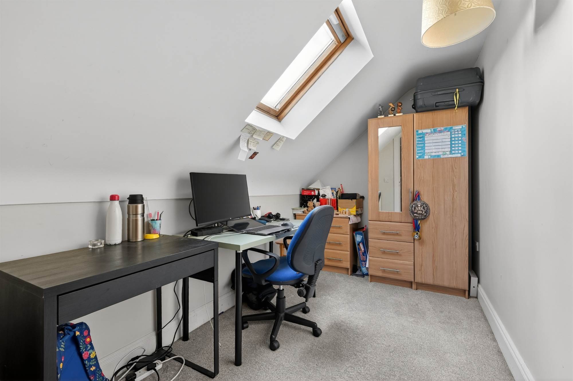 Carpeted, Velux window.