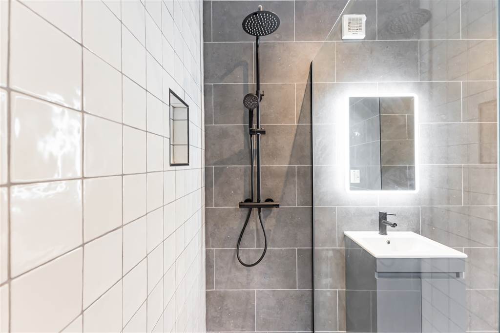 Contemporary Showerroom with Vanity Unit and LED Mirror