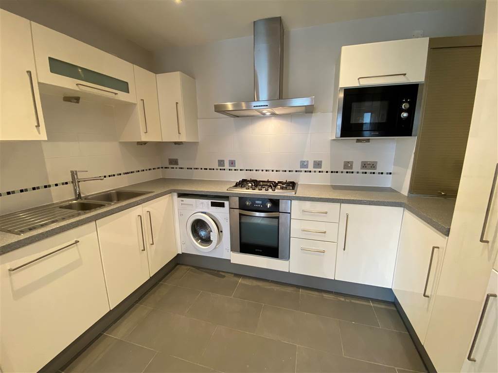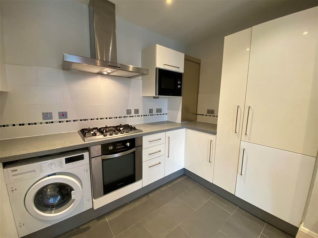 High and low level units with integrated dish washer, washing machine, oven, 5 ring gas hob, microwave, fridge freezer. Pull out larder.