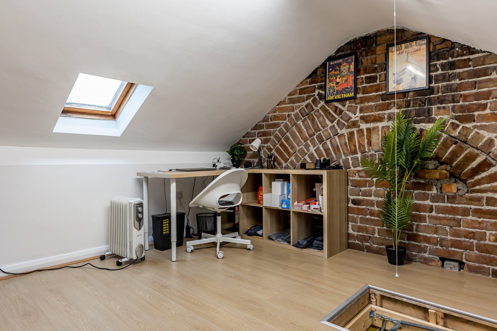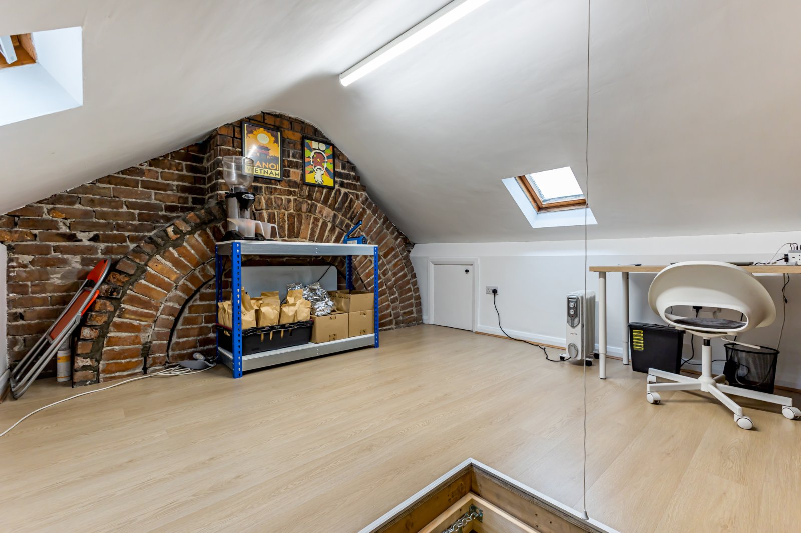 The roofspace is accessed by a Slingsby ladder, and has undergone extensive refurbishment, to allow for this superbly finished additional room. The room has been stripped back and fully replastered, and also has laminate flooring. The chimney breast has exposed brickwork, adding character and charm to the space.