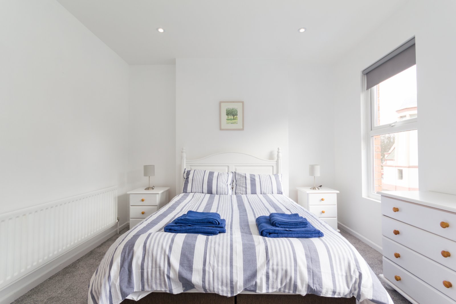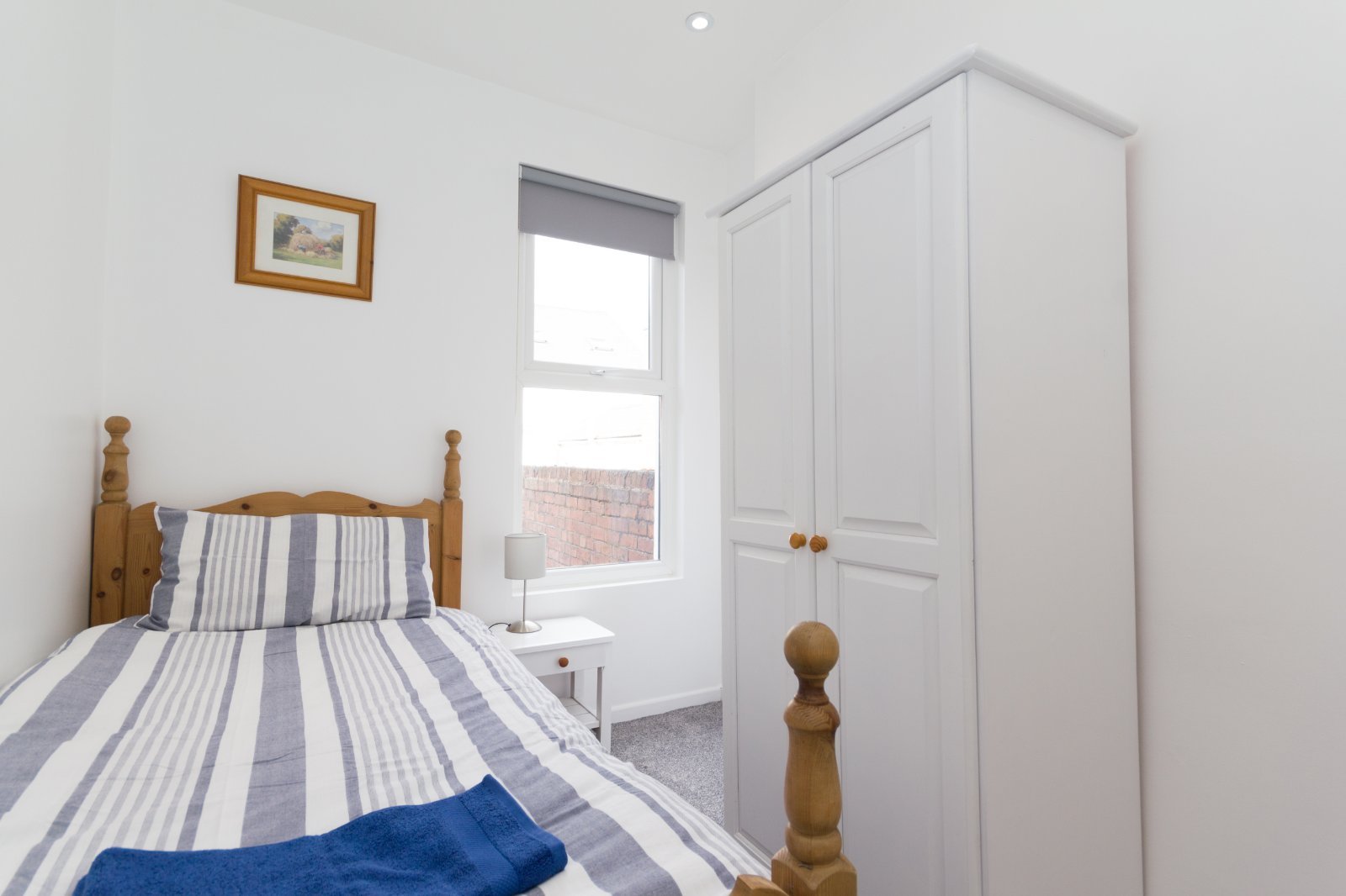 A very generously sized third bedroom with carpet and an outlook to the rear.