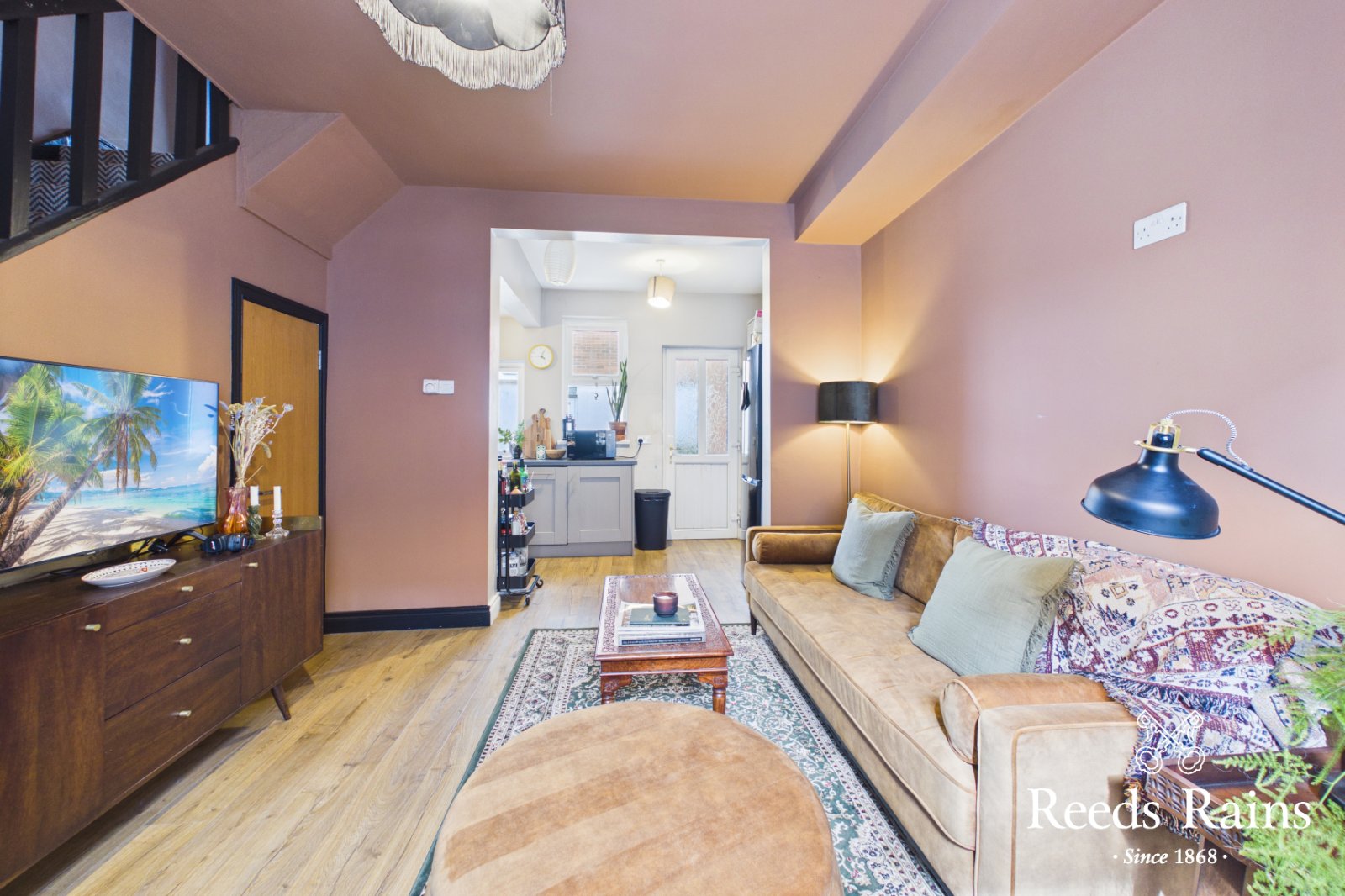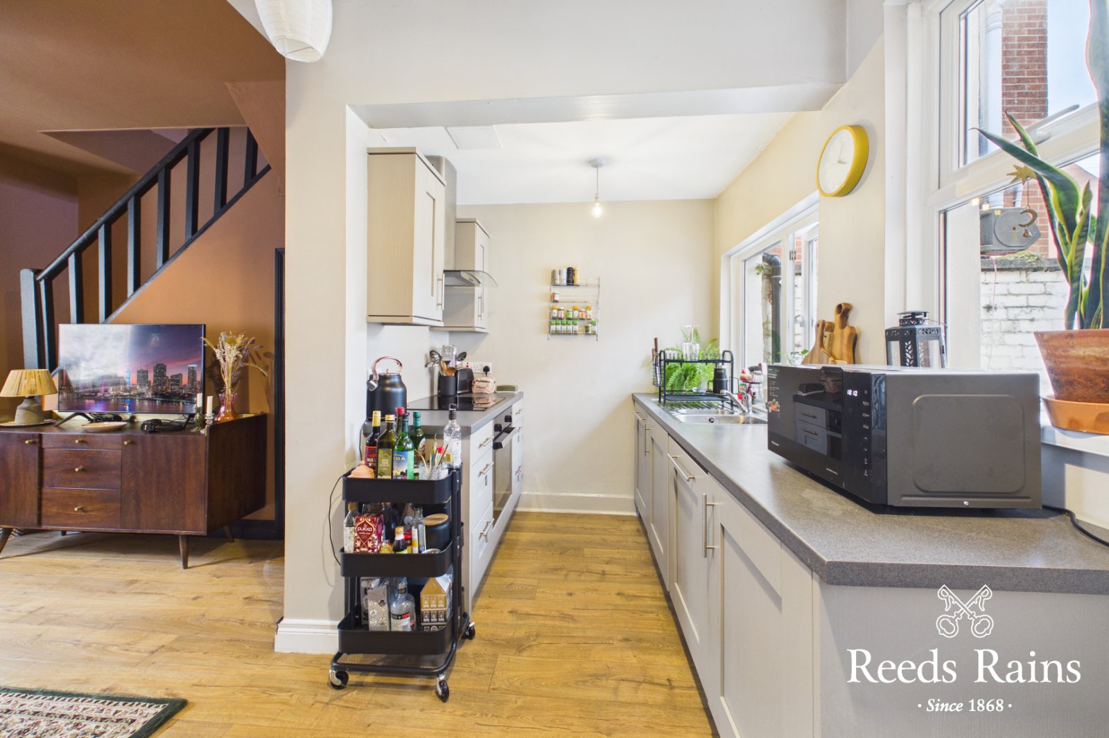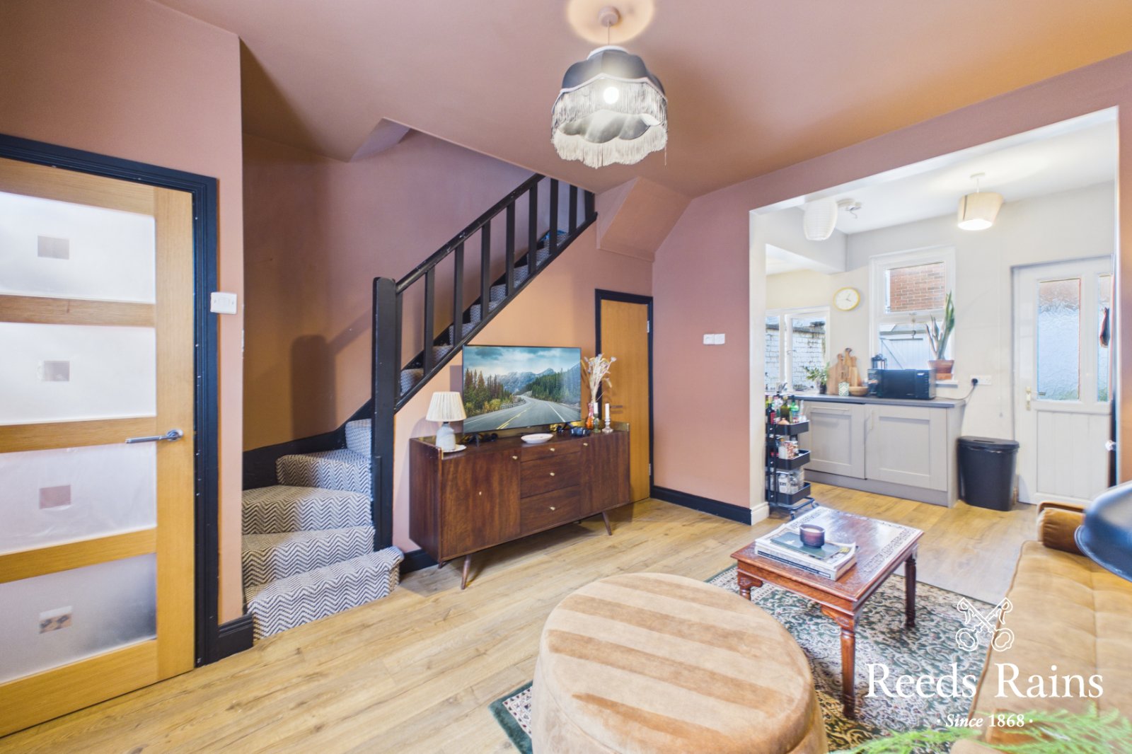 Wooden floor. Under stairs storage cupboard. Open plan to...