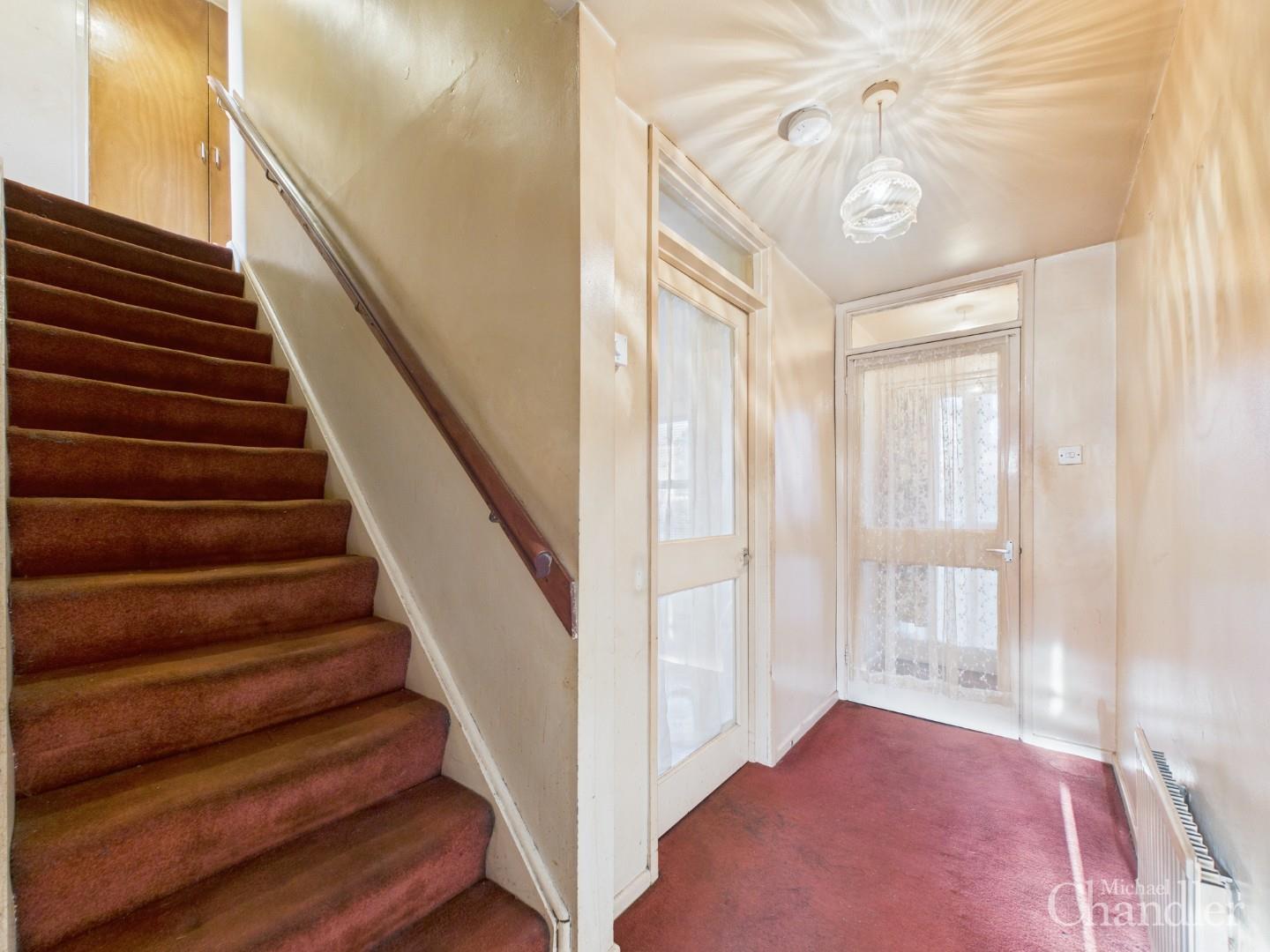 On the first floor, the property offers a landing with built-in storage, two well-proportioned double bedrooms and a third single bedroom. The bathroom is fitted with a three-piece suite including a walk-in shower.