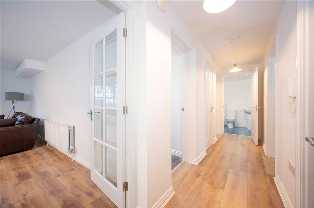 Laminate flooring, storage and separate cloakroom.