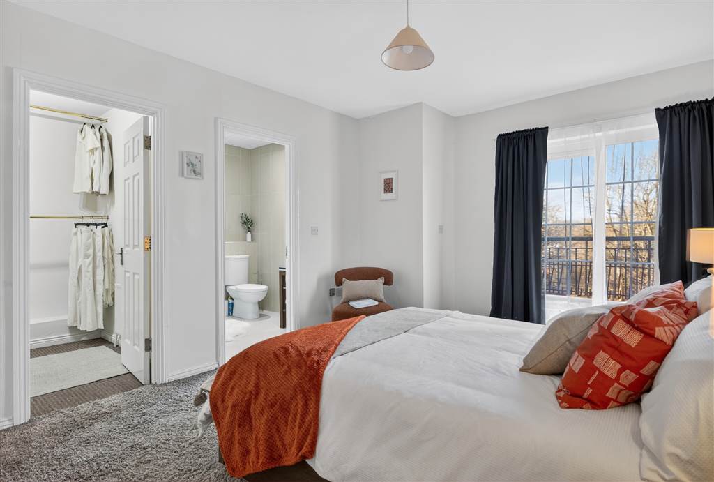 Offering bright and spacious accomodation arranged over three levels. On the ground floor, a spacious entrance hallway, W/C, utility room, guest room and integral garage. On the first floor, a fully equipped kitchen with dining area and lounge with gas-fire and balcony. Upstairs, a family bathroom, three more double bedrooms including a master with en-suite and balcony. The house is completed by a tranquil, enclosed rear garden and off street parking to the front.