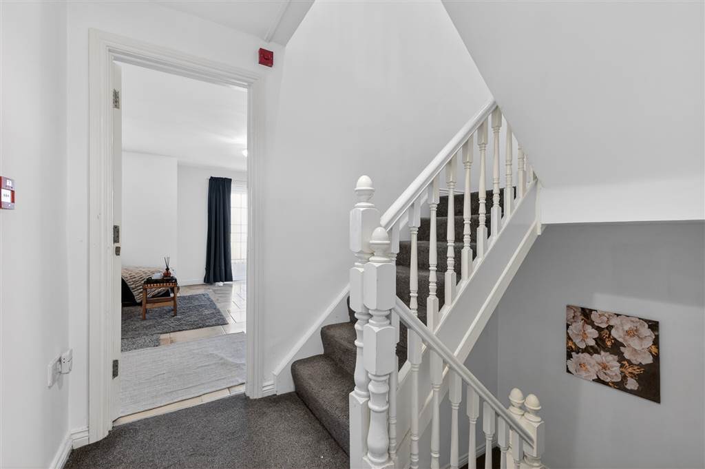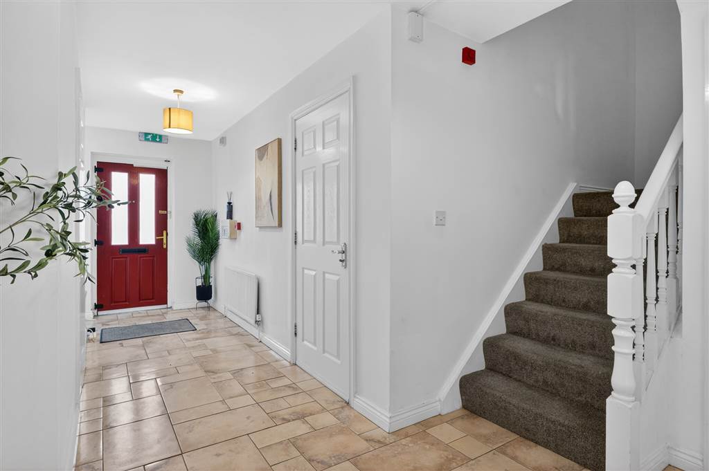 Ceramic tiled floor, built in cloaks and under stair storage.