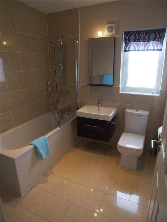FULLY TILED MAIN BATHROOM WITH SHOWER OVER BATH