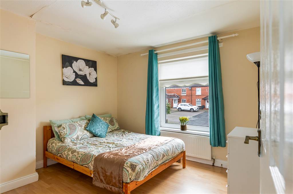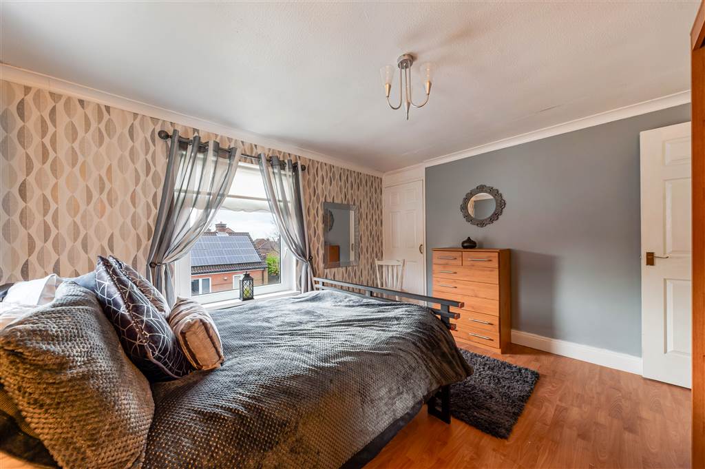 Laminate wood flooring, double panelled radiator, storage cupboard, cornice ceiling.