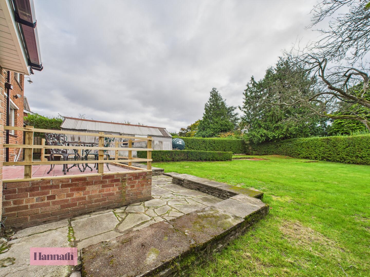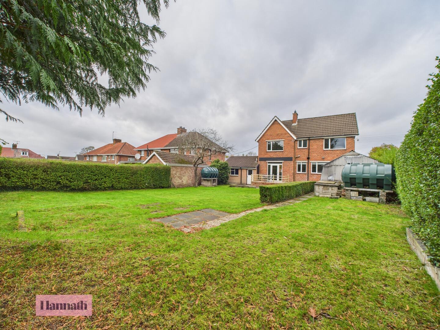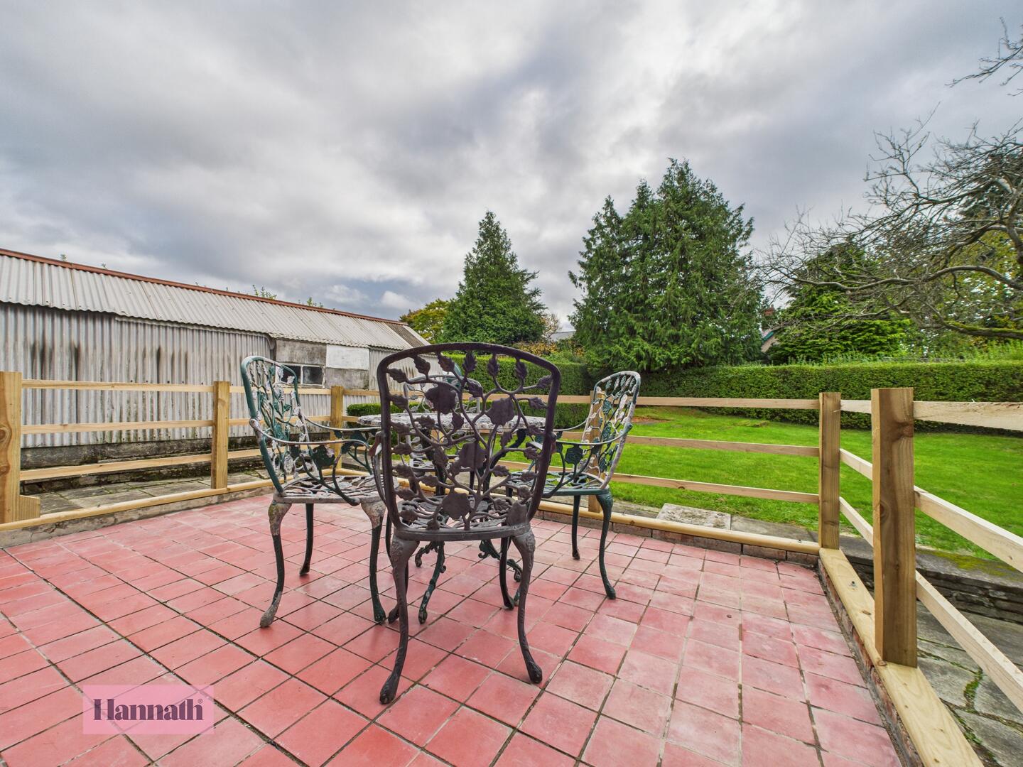 Wood laminate flooring, radiators, back door to rear patio area, feature fireplace/stove