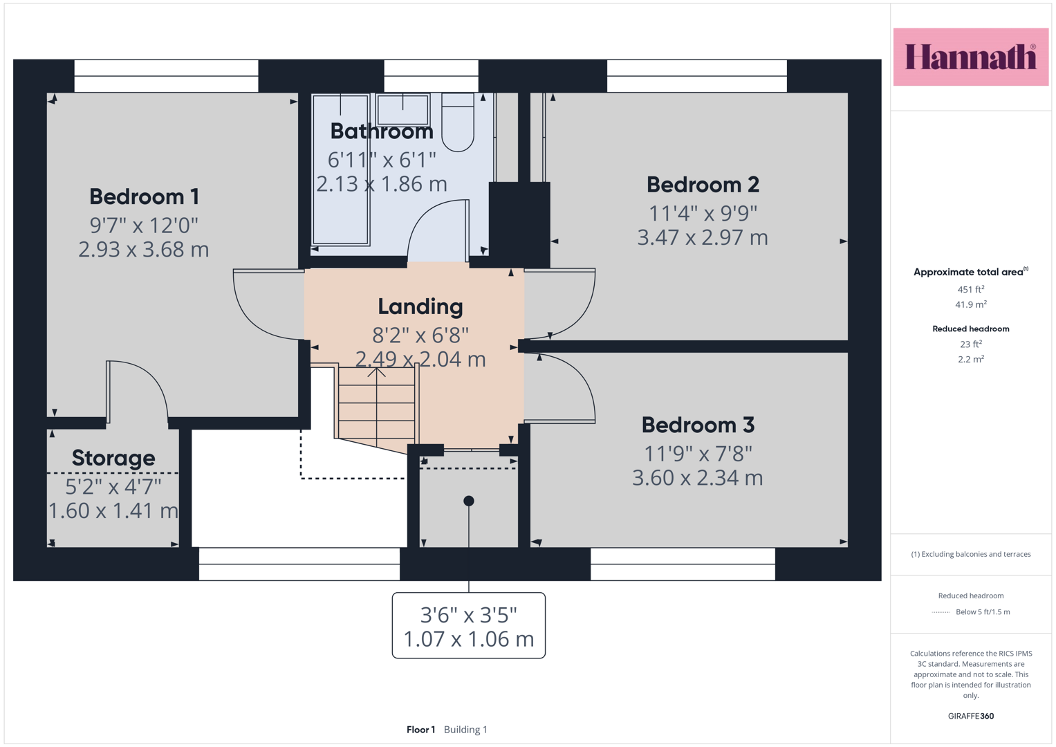 Landing 8'2 X 6'8 (2.49m X 2.03m)