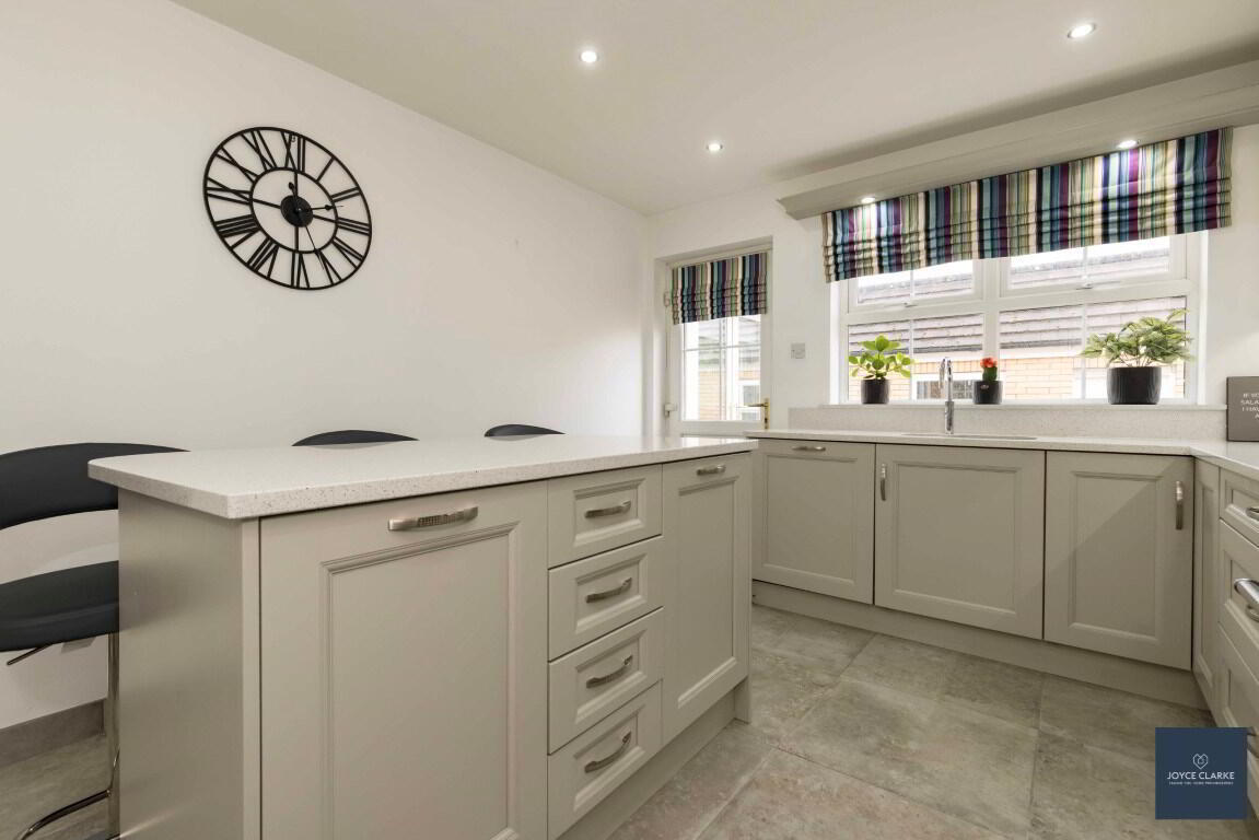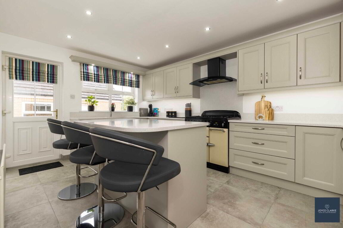 The home itself is immaculately presented and offers four double bedrooms, master with en suite shower room, family bathroom with separate shower and bath on the first floor. Enjoy family time in your choice of reception rooms to include gracious living room to the front, sunroom, and a third lounge which may also be considered as a dining room. The stylish modern fitted kitchen has excellent storage, contrasting island, quartz work surfaces and an array of integrated appliances, A WC completes the ground floor. Every detail in this fine home have been well considered, including beautiful wall panelling and attractive colour schemes that work well with the abundance of natural light that floods throughout the property. Step outside and the low maintenance garden is fully enclosed, with the detached garage and utility adjacent. There is excellent parking via the extensive tarmac driveway to the front and rear suitable for multiple cars.