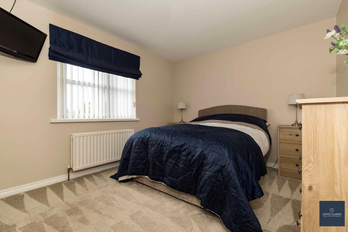 Rear aspect double bedroom. Fitted double door slide wardrobe with mirrored doors. TV point. Double panel radiator.