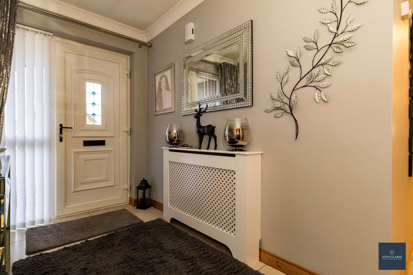 ENTRANCE HALLUPVC entrance door with glazed panel and glazed panels to side. Tiled flooring. Double panel radiator. Access to cloakroom and hotpress.