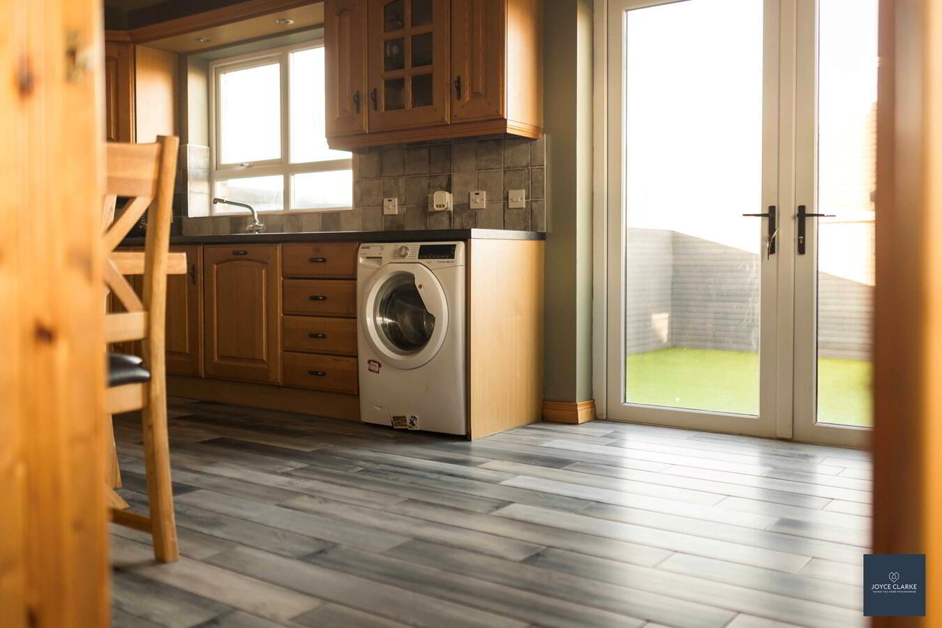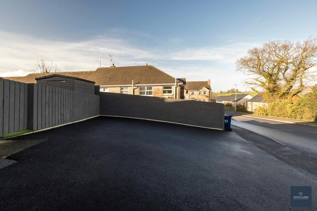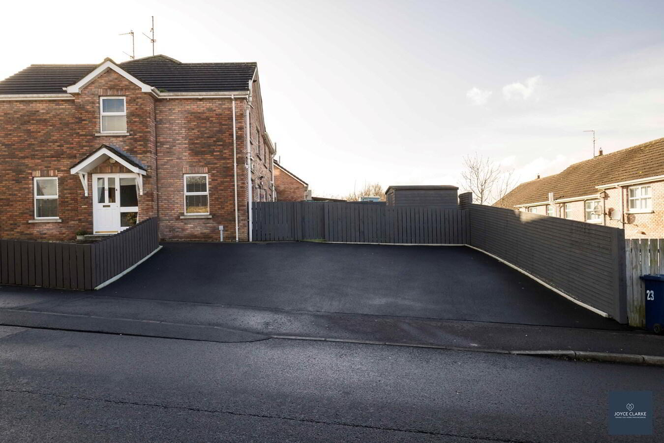 23 Ballyoran Manor must be seen to fully appreciate all that this beautifully maintained home has to offer! Step inside to the bright and spacious hallway, and you will find the dual aspect living room which is the perfect size for entertaining family and friends. The kitchen is open plan to dining, and has French doors leading out to the rear garden. It offers a range of high and low level storage units with glazed display cabinet, and has integrated fridge freezer and dishwasher. A WC completes the ground floor. This semi detached home is a great layout, with three double bedrooms to the first floor. The recently updated family bathroom is well proportioned and features a separate shower and bath. As this property is set upon a corner plot there is plenty of room on the outside, with a low maintenance fully enclosed garden to the rear with artificial grass, and a further lawn area to the side. Parking for several cars is via the tarmac driveway to the front. All enquiries to the Joyce Clarke sales team.