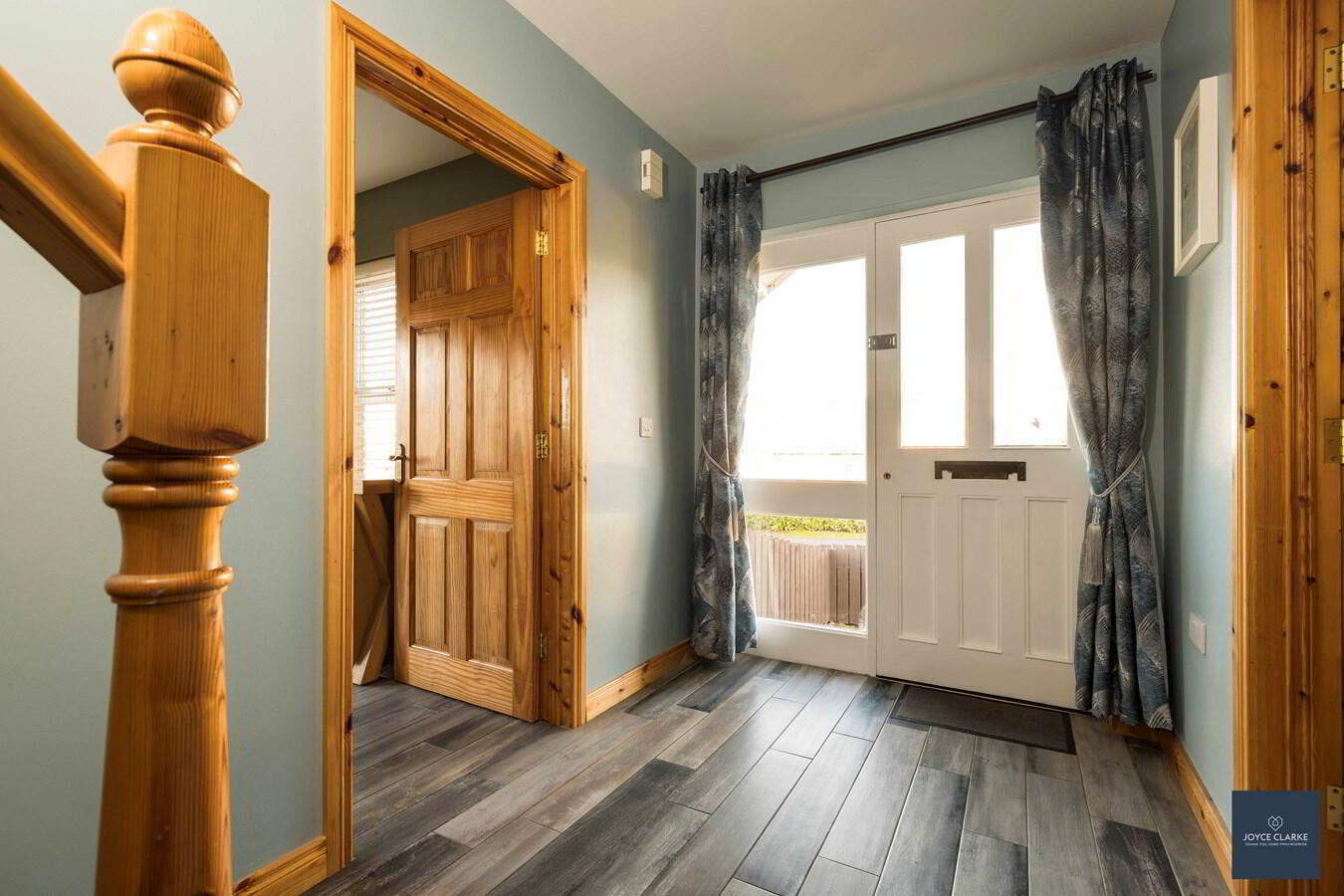 ENTRANCE HALLPart glazed hardwood entrance door leading to hallway. Tiled flooring. Single panel radiator.