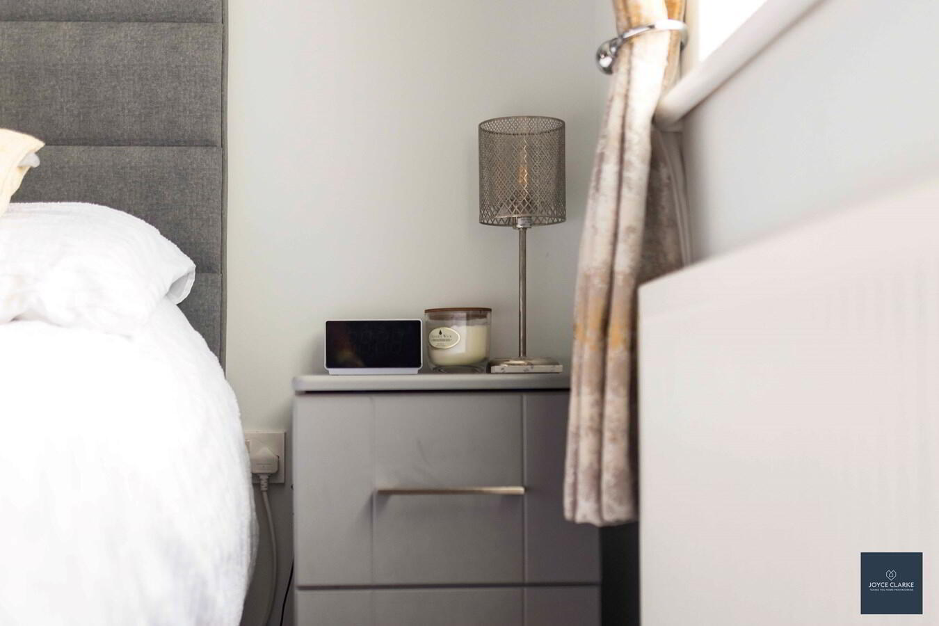 Feature fireplace with tiled hearth and surround with open fire. Laminate flooring. Double panel radiator. TV point. Thermostat.