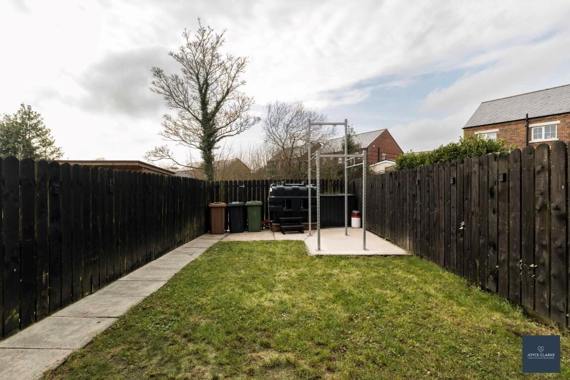 Fully enclosed rear garden with gated access to rear. Majority of garden laid in lawn. Paved patio area. Oil tank. Outside tap and lighting.