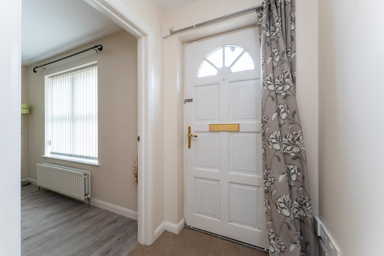 ENTRANCE HALLSolid wood entrance door. Single panel radiator. Alarm panel.
