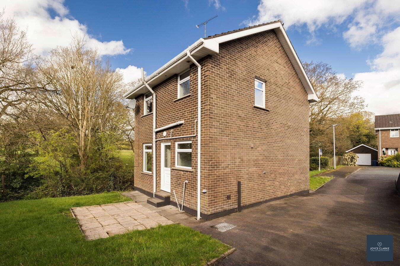 Lawn area to front. Tarmac driveway to side.