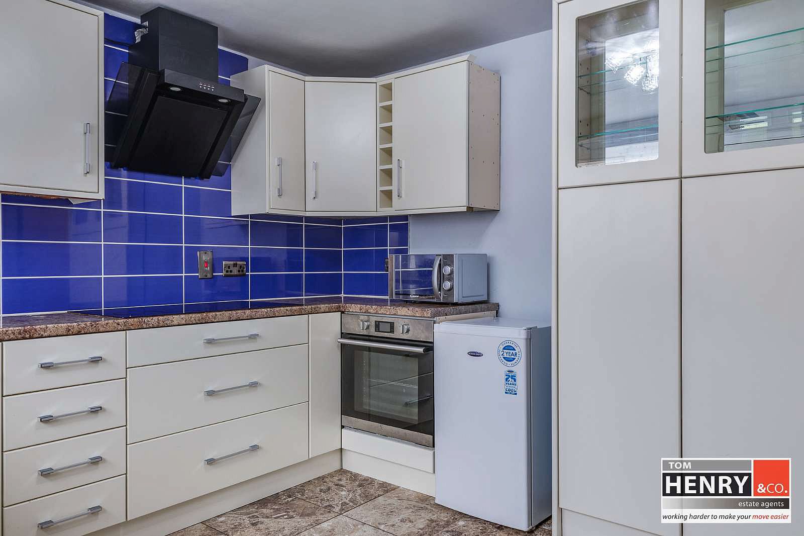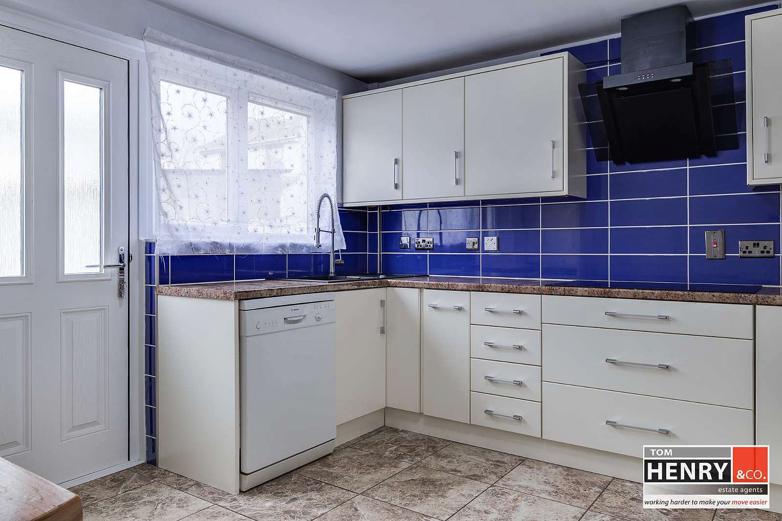 FITTED HIGH & LOW LEVEL UNITS. GLAZED DISPLAY UNIT. WINE RACK. SINK WITH MIXER TAP FITTING. 5 RING INTEGRATED HOB WITH X-FAN OVER. INTEGRATED OVEN. SPACE FOR FRIDGE FREEZER. PLUMBED FOR DISHWASHER. SPACE FOR TUMBLE DRYER. BREAKFAST BAR WITH SPACE FOR CASUAL DINING. TILED BETWEEN UNITS. TILED FLOOR. COMPOSITE EXTERNAL DOOR WITH GLAZED PANELS TO REAR GARDEN.