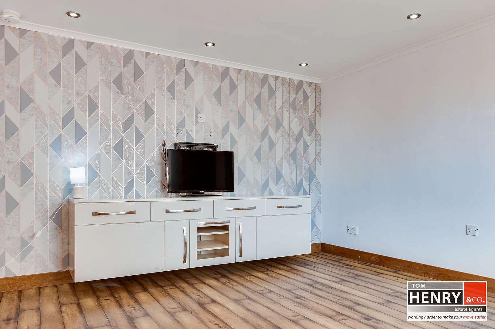 PRE-FINISHED FLOOR. MEDIA UNIT INCLUDED. COVING & RECESSED LIGHTING TO CEILING.