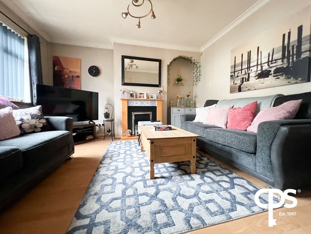 This spacious living room allows for neutral decor within and benefits from an electric inset fireplace on wooden surround. There is coving within and numerous electrical sockets