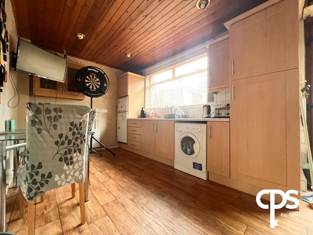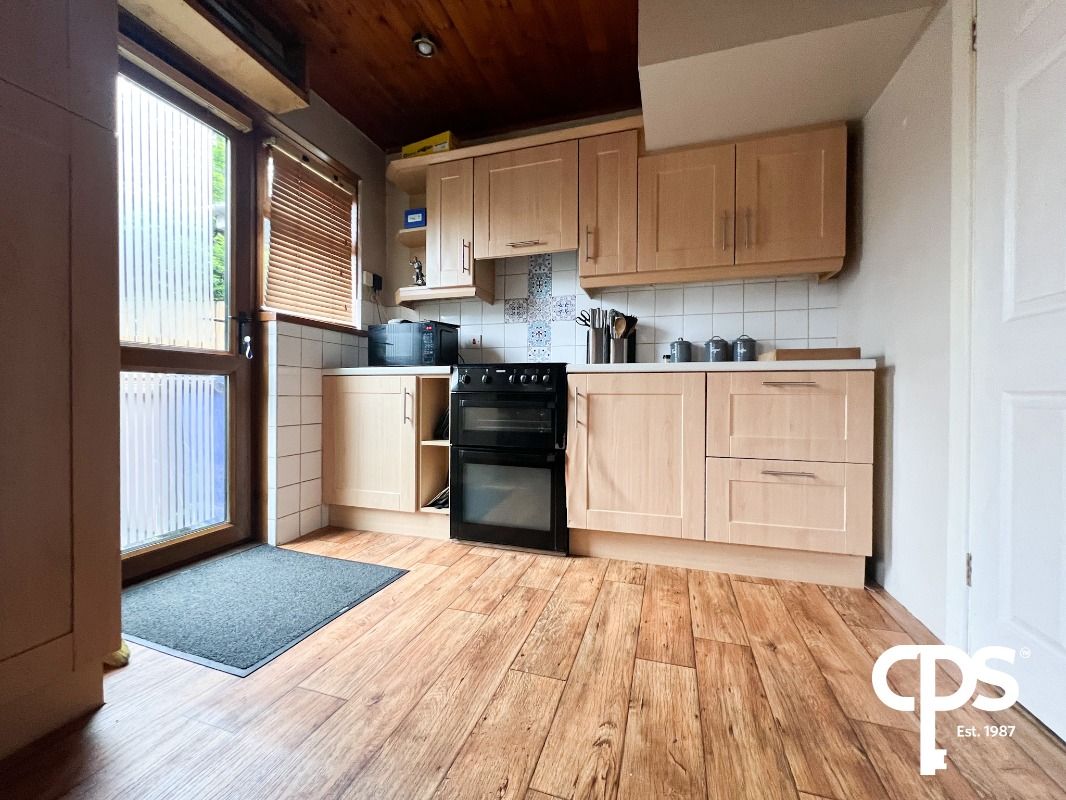 Spacious kitchen with high and low units within. Plumbed for washing machine. Stainless steel sink.