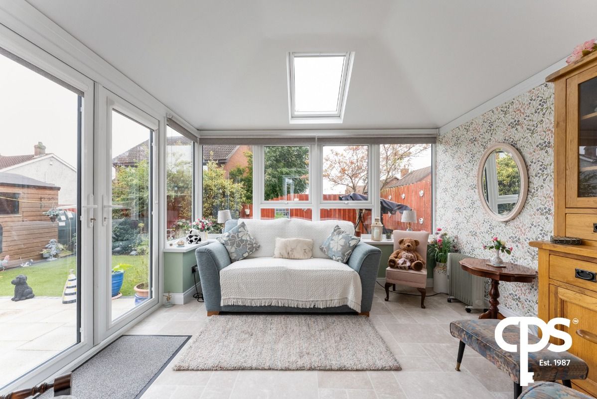Sunroom – 3.3m x 3.3m Tiled flooring, Tv Point, PVC door access to rear garden, Velux window.