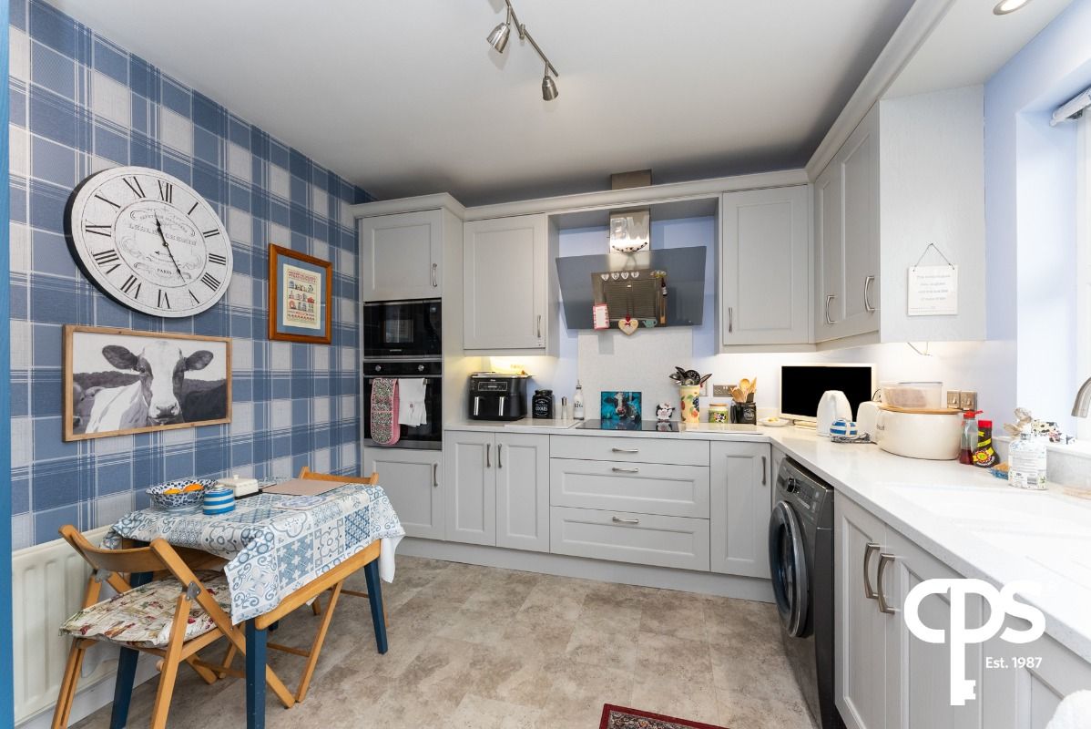 Kitchen – 3.9m x 3.0m High- and low-level Units, Built in fridge, Tiled flooring.