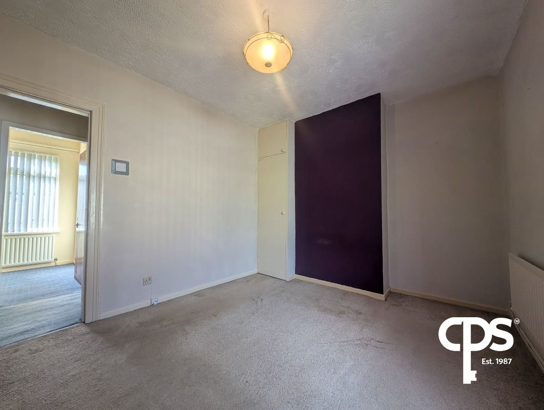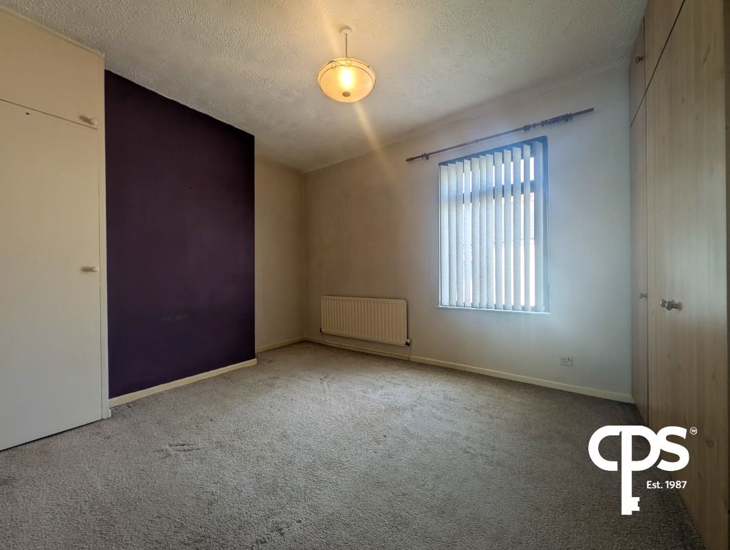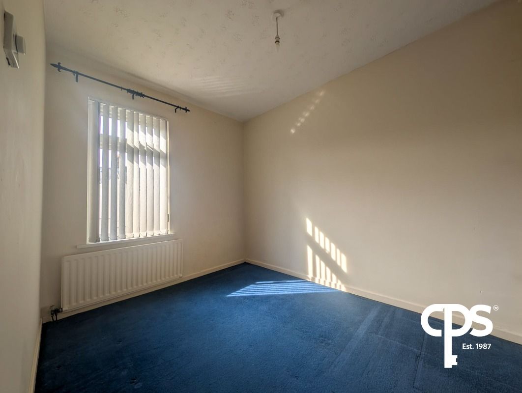 Rear-facing bedroom with carpet flooring and single panel radiator.