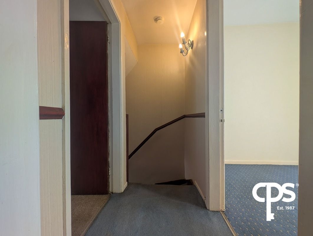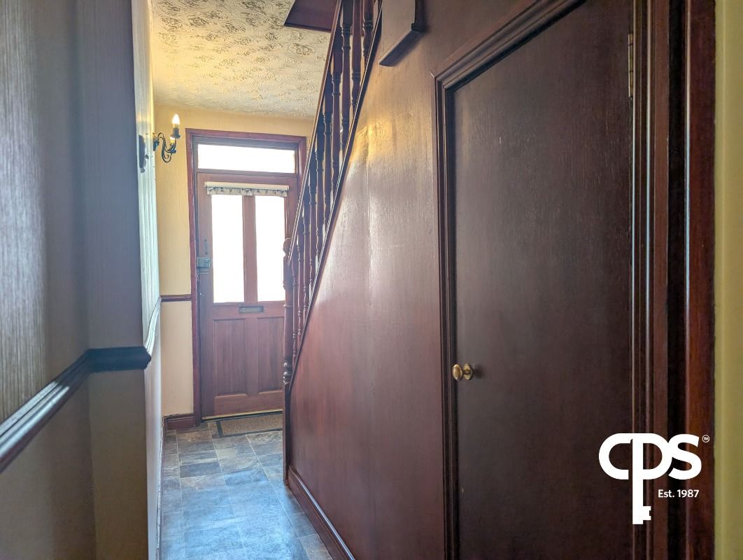 Entrance hall complete with laminate flooring, double panel radiator and useful under-stair storage.