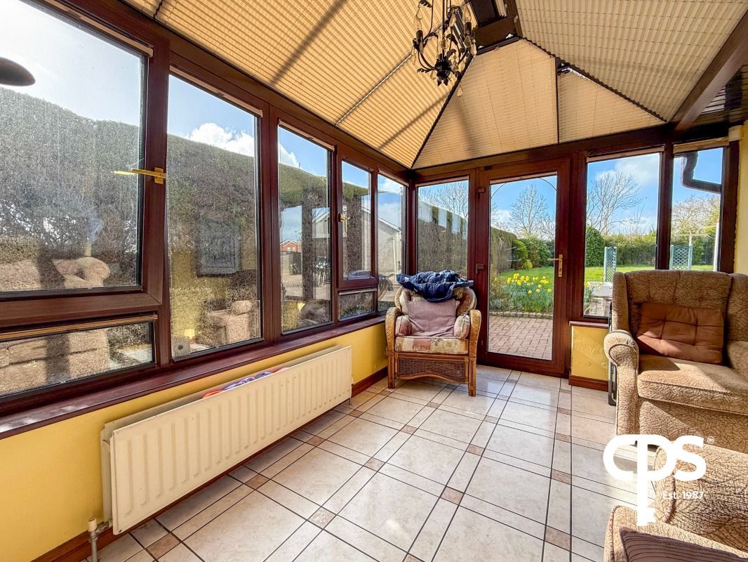 A bright and airy conservatory with tiled flooring and full glass surround, providing an excellent additional living space overlooking the rear.