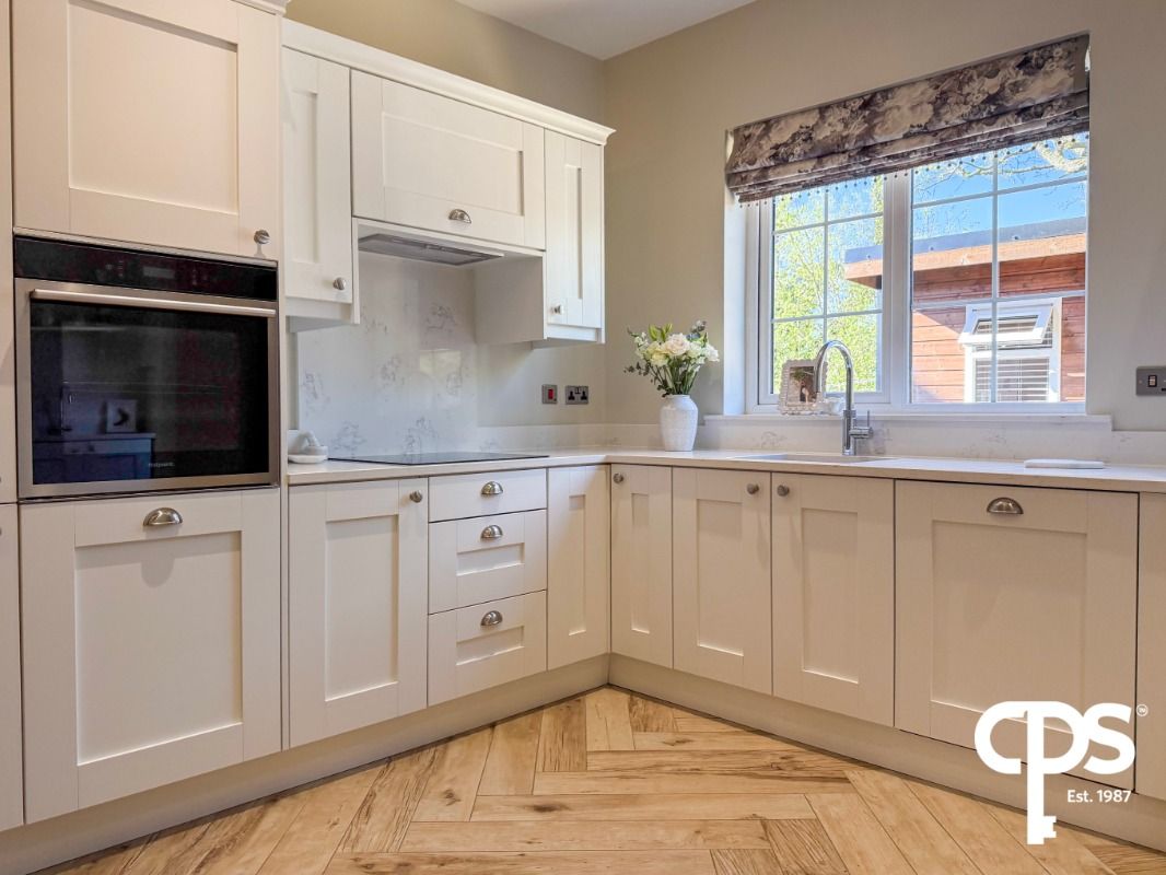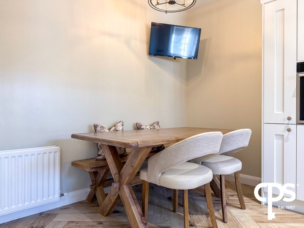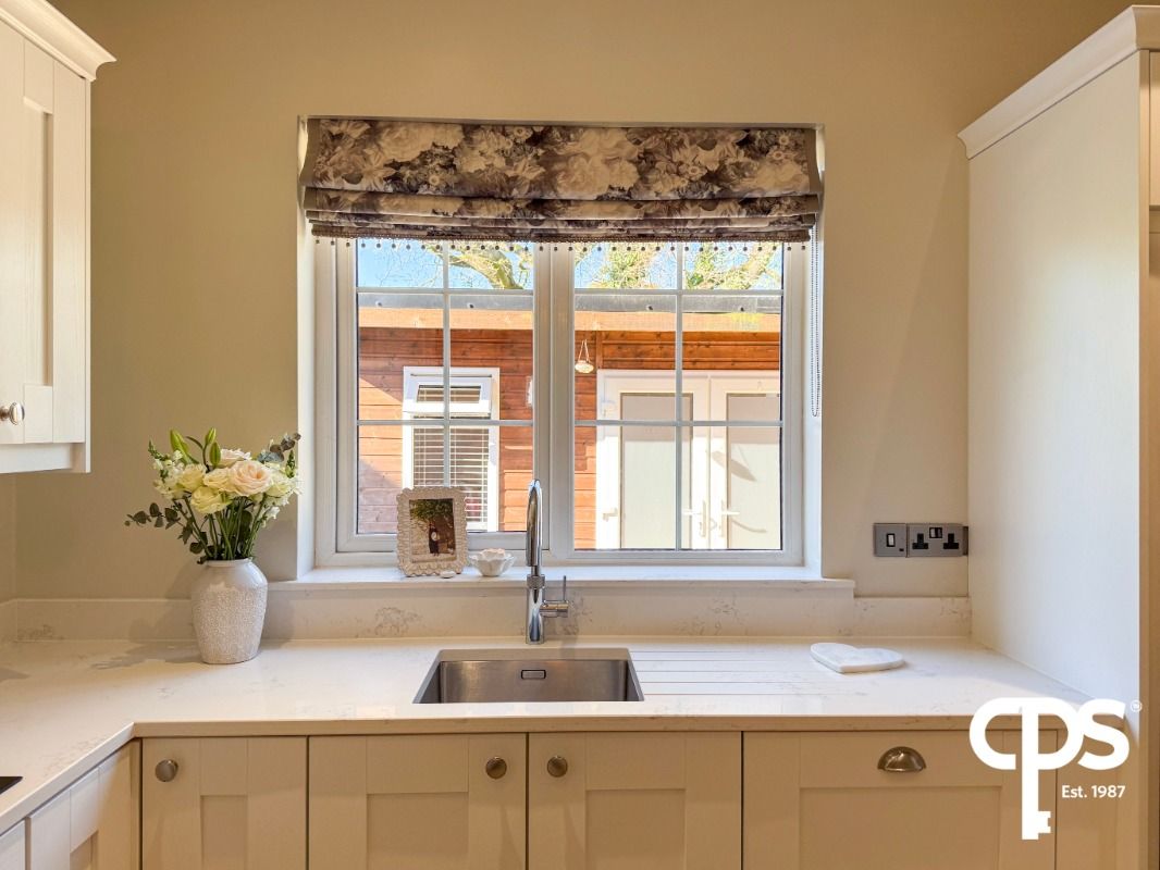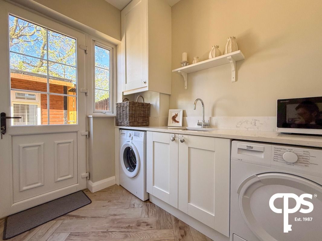 A continuation of the kitchen units with quartz worktops provides additional storage. Plumbed for washing machine and tumble dryer. Direct access to the rear garden.