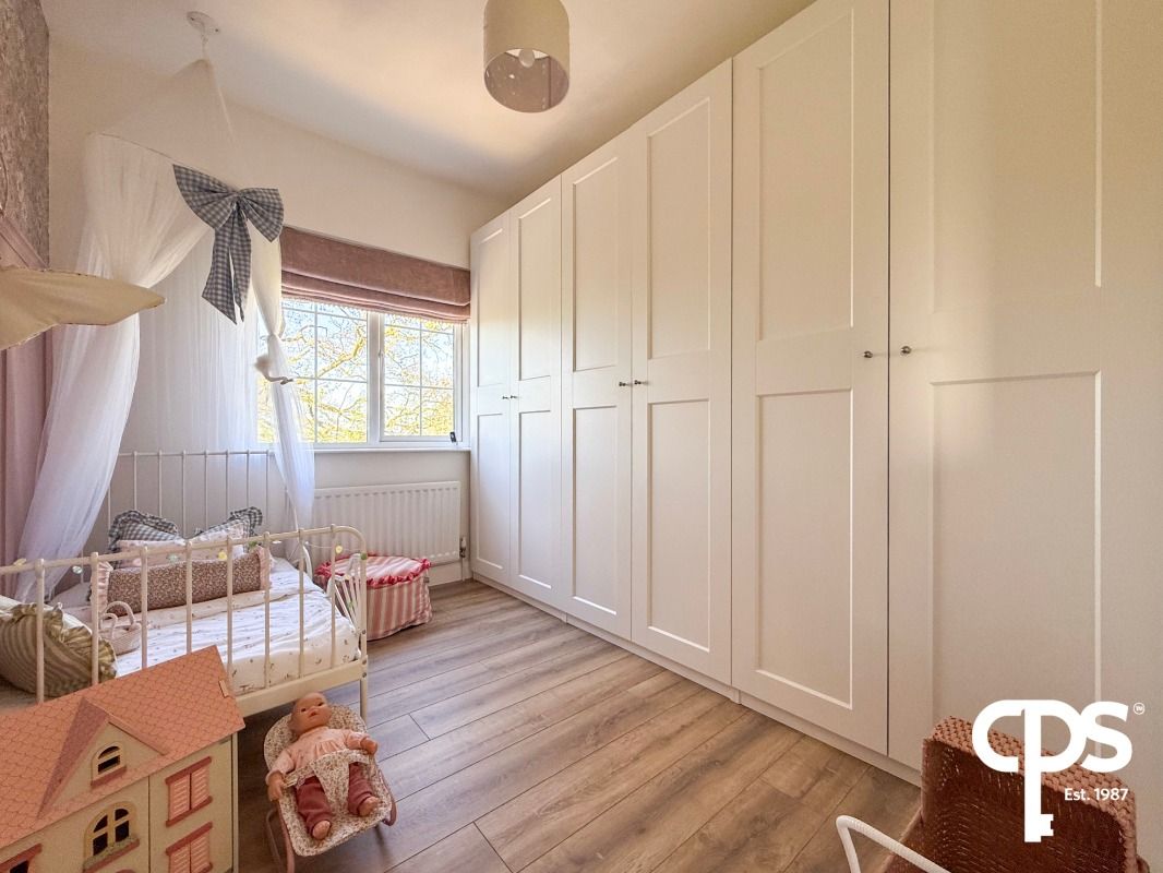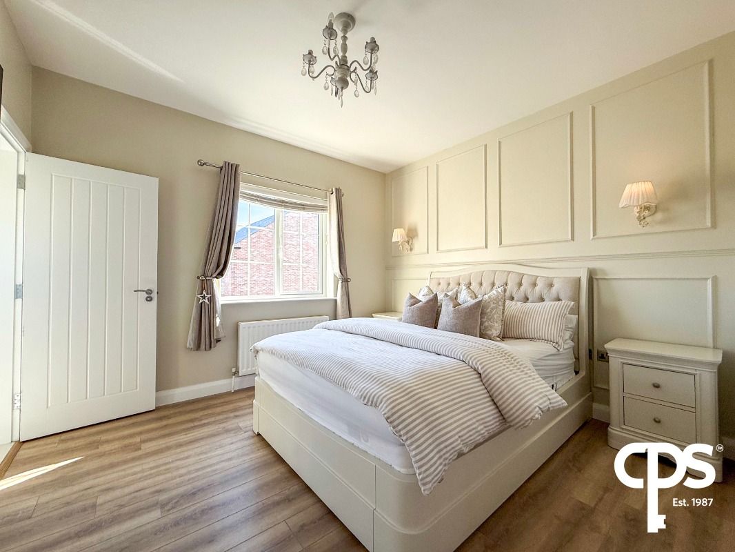 A spacious double room with wood-effect flooring and feature wall panelling. Access to a walk-in wardrobe (0.82m x 2.15m) and ensuite.