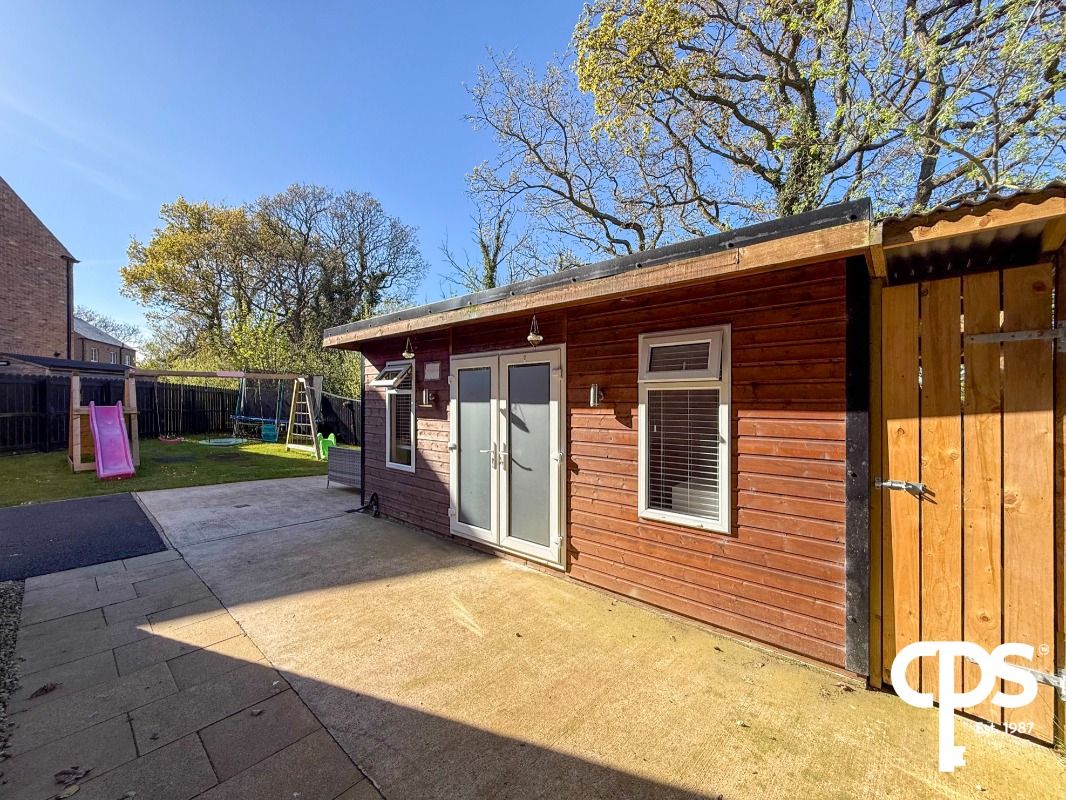 A standout feature offering a versatile additional space with plumbing and electrical points. Double patio doors open onto the garden, making it ideal as a home office, gym, salon or entertaining area. Kindly note that the garden room is offered as an optional extra.