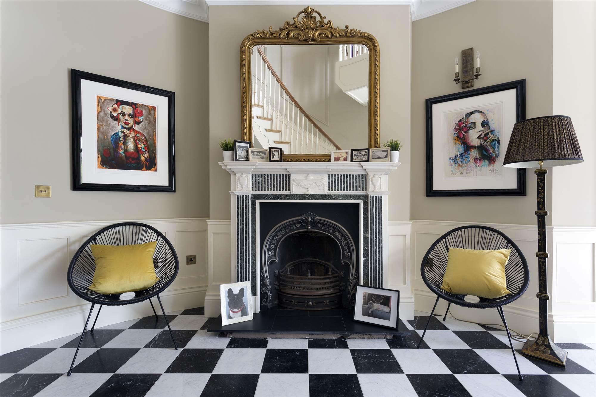 Attractive feature marble fireplace with open fire. Italian marble flooring. Corniced ceiling.