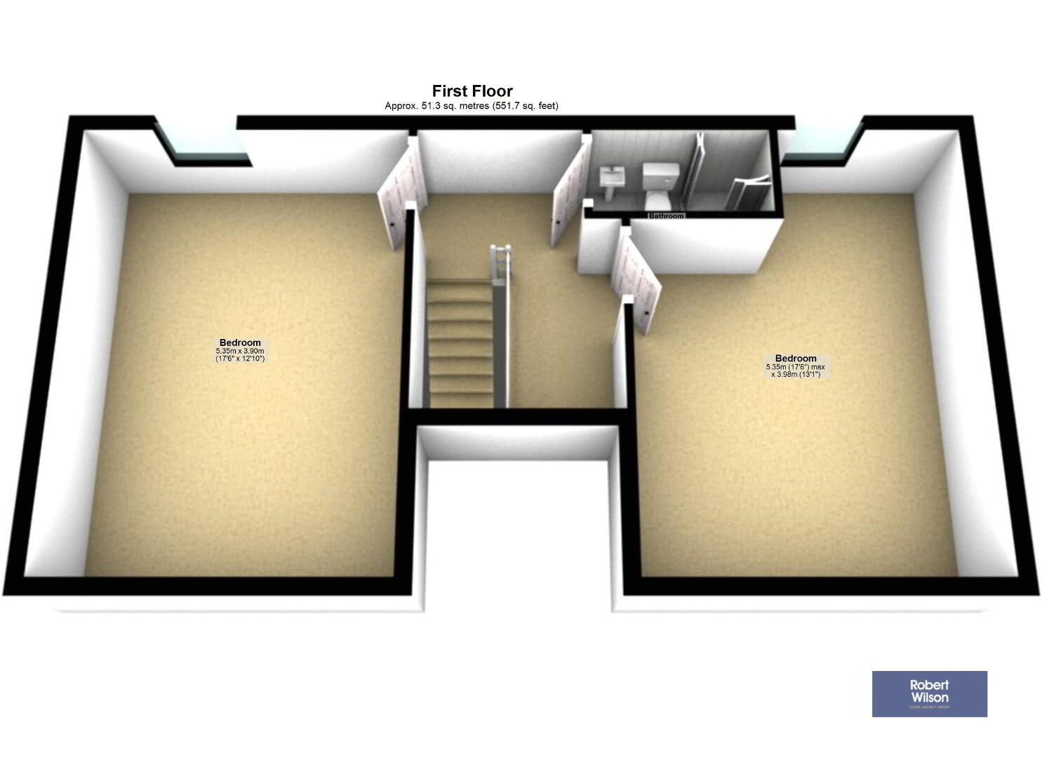 5.35m x 3.98m (17' 7" x 13' 1") Wood effect laminate flooring, "Keylite" window to front & escape window to rear, facilities for wall mounted TV, radiator.