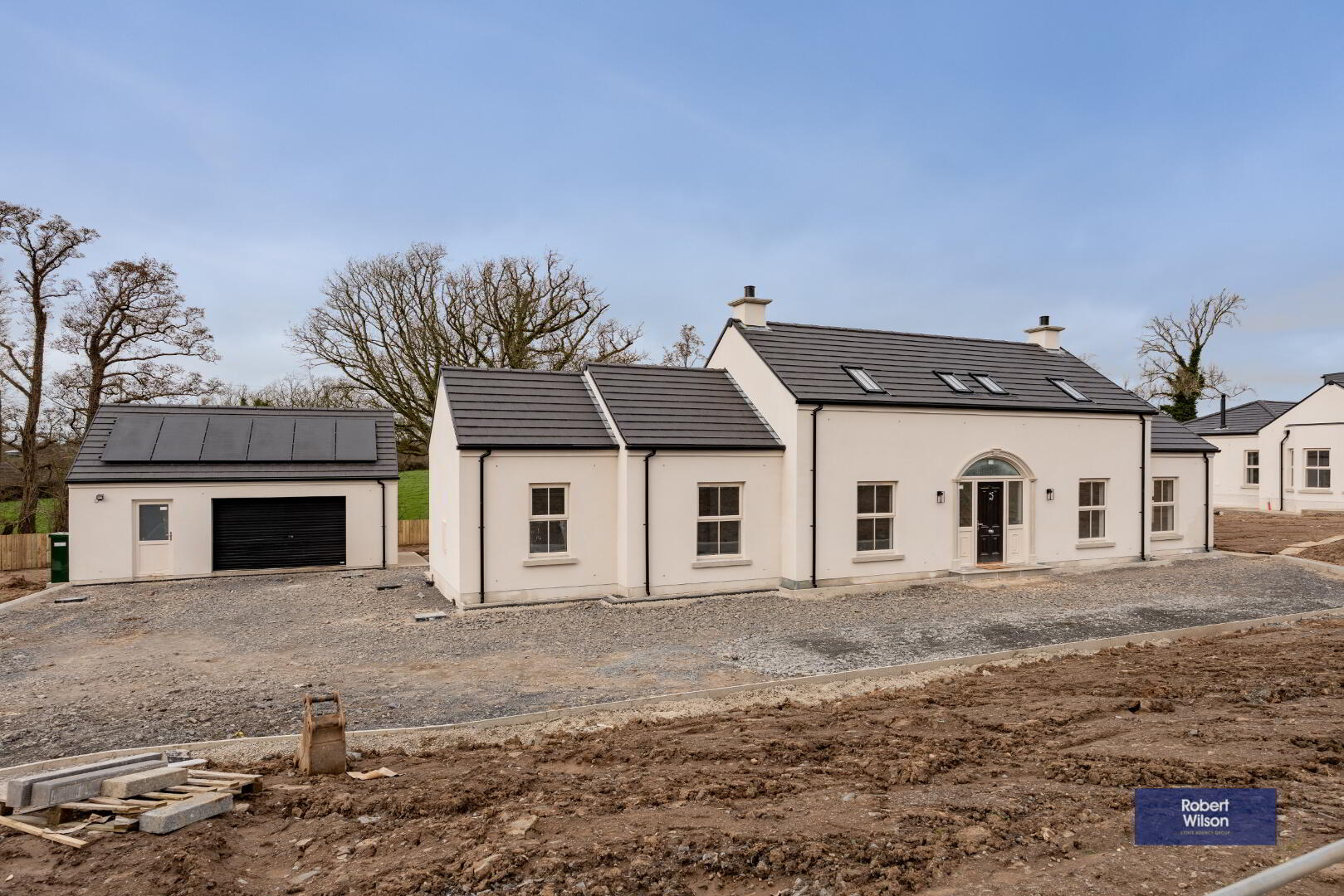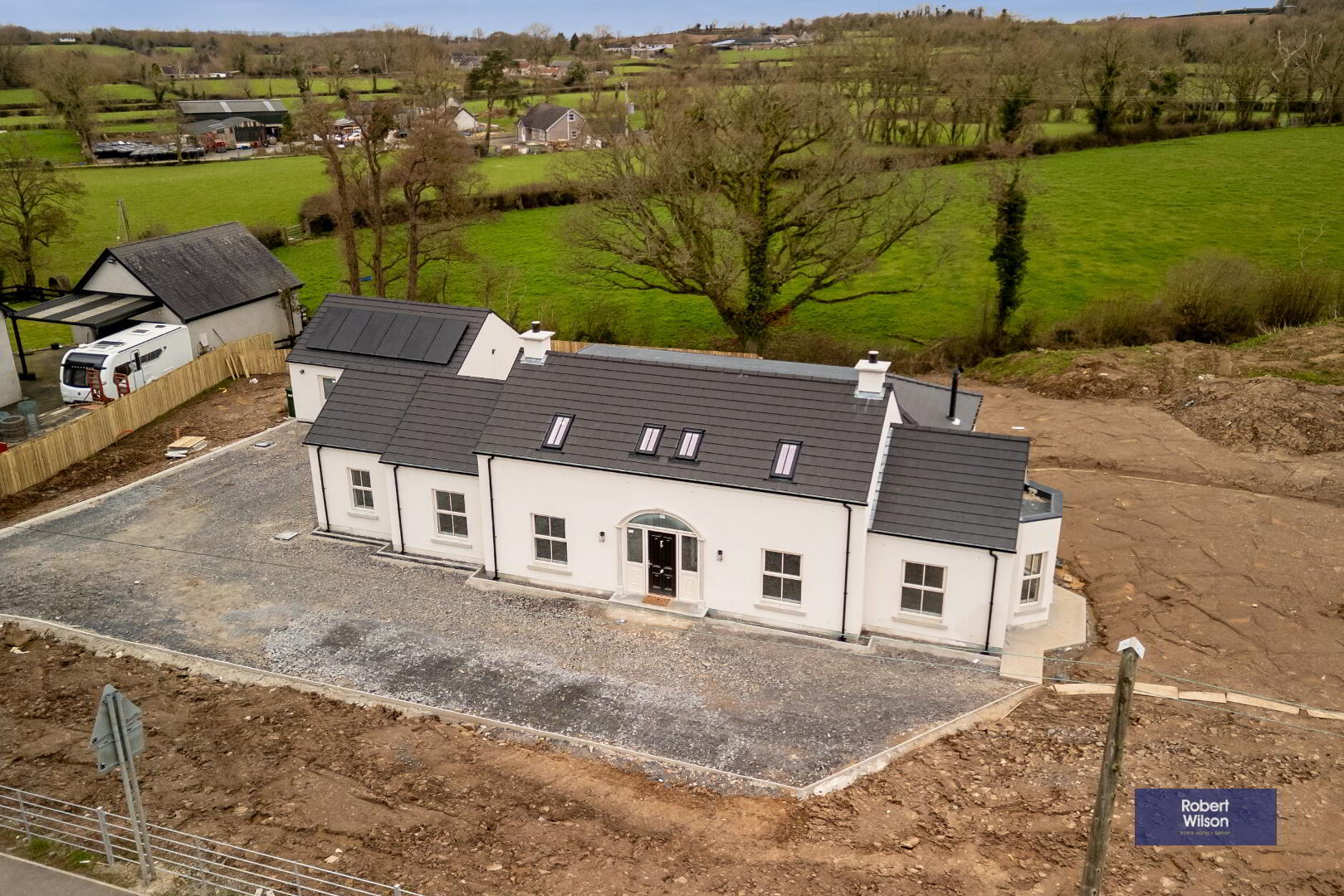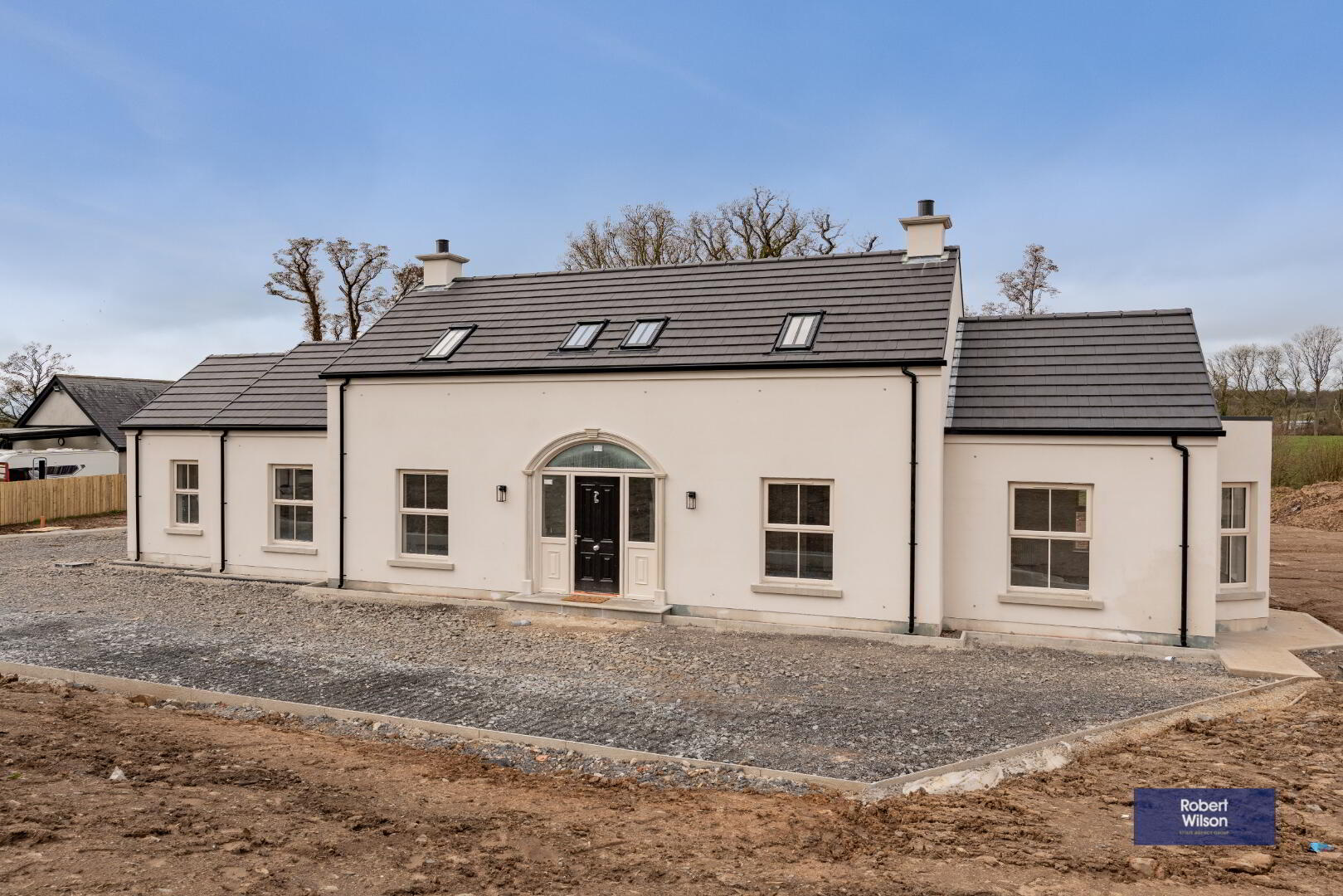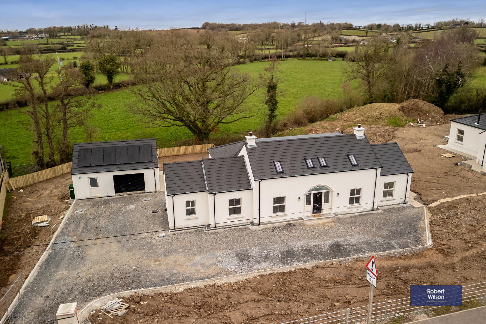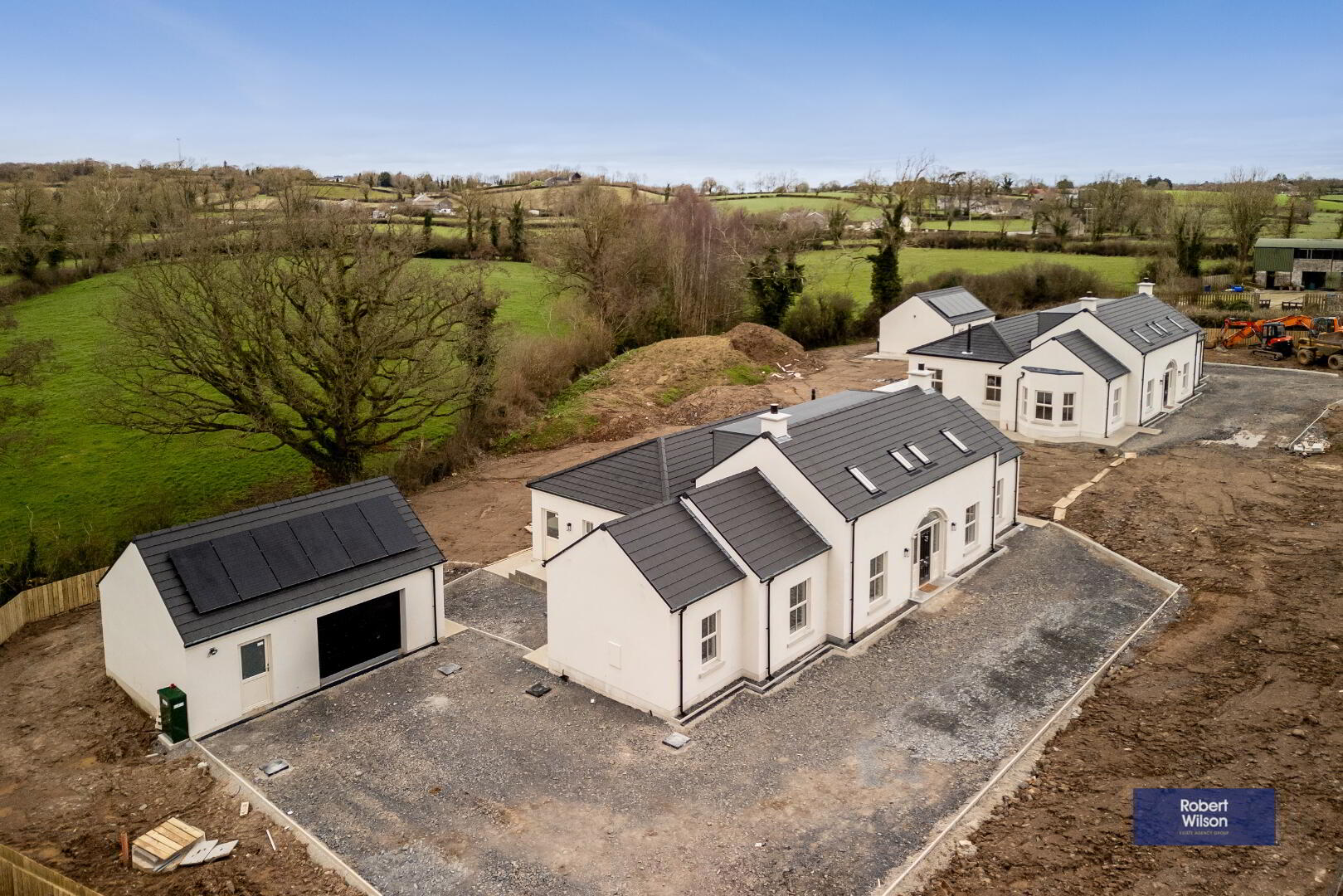 Nestled in a beautiful semi-rural setting between Lurgan and Gilford, these two stunning new-build chalet-style bungalows offer spacious, modern living finished to an exceptional specification. Designed with both style and practicality in mind, the homes extend to generous five-bedroom accommodation and enjoy picturesque open countryside views to the rear. The heart of each home is the impressive open-plan living, kitchen and dining area, complete with a central island and a cosy multi-fuel stove—perfect for both everyday family life and entertaining. A separate living room provides additional relaxation space, while the ground floor also benefits from three well-proportioned bedrooms, a utility room, and a convenient downstairs WC. Upstairs, there are 2 double bedrooms, the luxurious master bedroom boasts a walk-in wardrobe and private ensuite. A stylish four-piece family bathroom completes the first floor accommodation. Externally, the properties are equally impressive, with landscaped gardens, a detached garage, and a disabled access ramp from the rear door to the garage. The front entrance features attractive pillars with electrical provision for automated gates should the new owners wish to install them. Cream double-glazed windows, composite front and rear doors, and oil-fired central heating complete these beautiful homes. Finished to a superb standard throughout, these properties truly offer a turnkey opportunity—simply move in and enjoy the space, comfort, and breath-taking countryside views. Ideal for first-time buyers, families seeking room to grow, or anyone looking for modern living in a peaceful yet convenient location. All floors are tiled or have wood effect Laminate fitted, white panelled wooden doors through-out with Hockey Stick architraves, seamless guttering & PVC downspouts....all for low maintenance living.