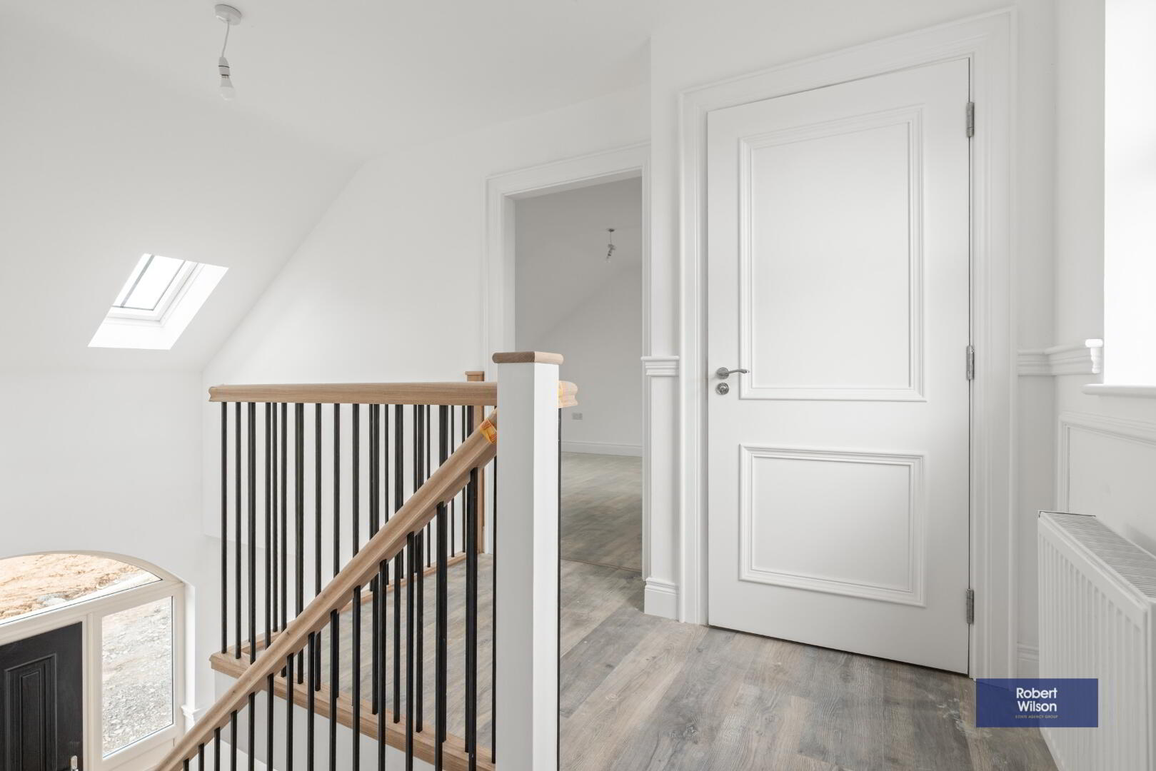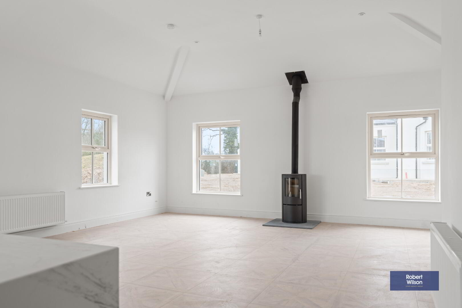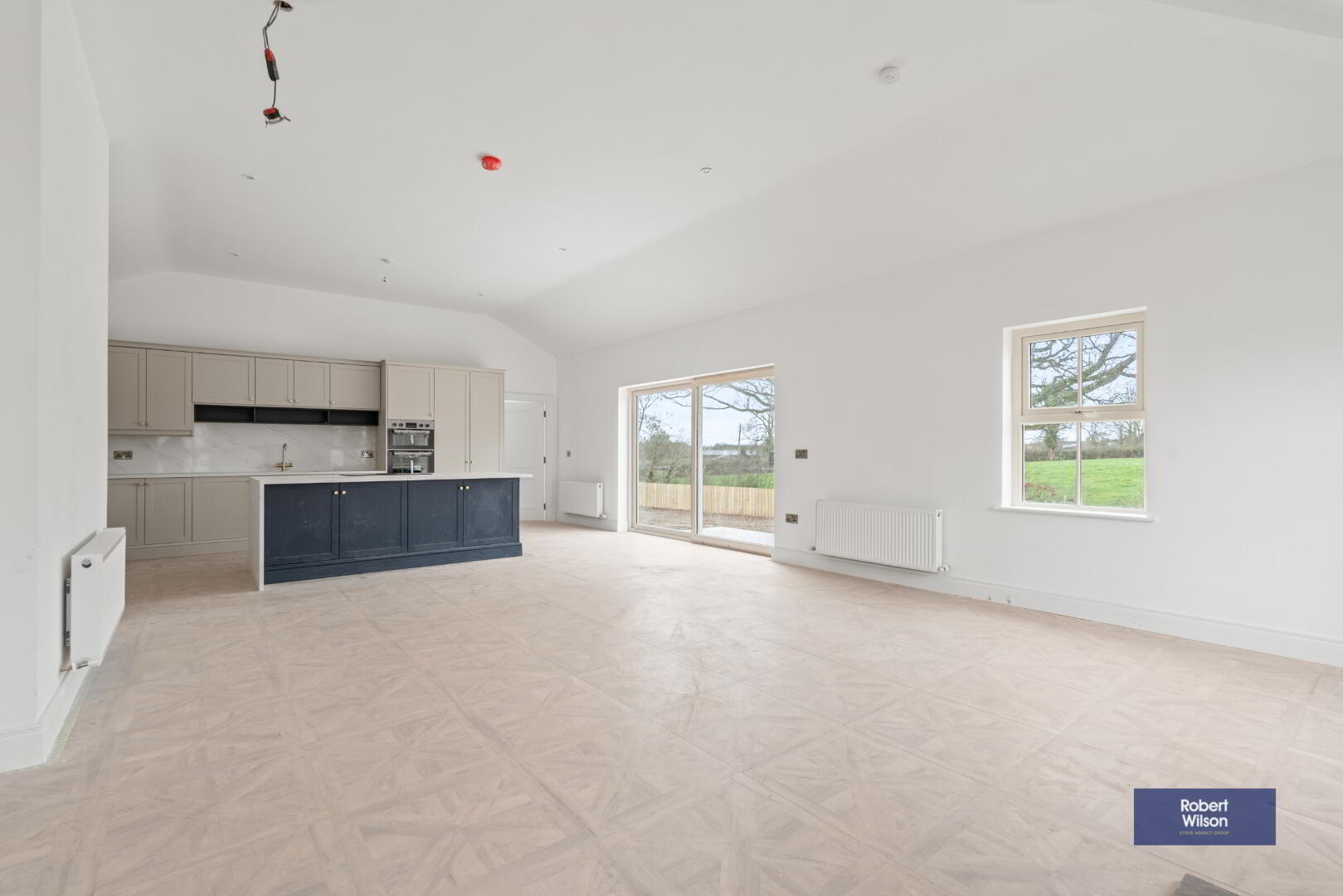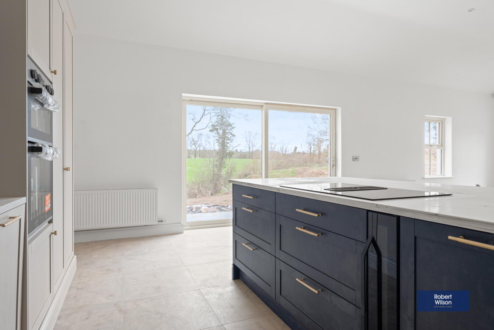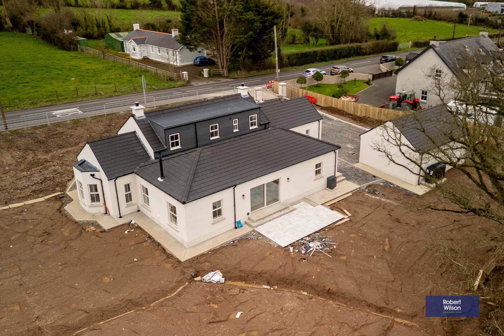 Nestled in a beautiful semi-rural setting between Lurgan and Gilford, these two stunning new-build chalet-style bungalows offer spacious, modern living finished to an exceptional specification. Designed with both style and practicality in mind, the homes extend to generous five-bedroom accommodation and enjoy picturesque open countryside views to the rear. The heart of each home is the impressive open-plan living, kitchen and dining area, complete with a central island and a cosy multi-fuel stove—perfect for both everyday family life and entertaining. A separate living room provides additional relaxation space, while the ground floor also benefits from three well-proportioned bedrooms, a utility room, and a convenient downstairs WC. Upstairs, there are 2 double bedrooms, the luxurious master bedroom boasts a walk-in wardrobe and private ensuite. A stylish four-piece family bathroom completes the first floor accommodation. Externally, the properties are equally impressive, with landscaped gardens, a detached garage, and a disabled access ramp from the rear door to the garage. The front entrance features attractive pillars with electrical provision for automated gates should the new owners wish to install them. Cream double-glazed windows, composite front and rear doors, and oil-fired central heating complete these beautiful homes. Finished to a superb standard throughout, these properties truly offer a turnkey opportunity—simply move in and enjoy the space, comfort, and breath-taking countryside views. Ideal for first-time buyers, families seeking room to grow, or anyone looking for modern living in a peaceful yet convenient location. All floors are tiled or have wood effect Laminate fitted, white panelled wooden doors through-out with Hockey Stick architraves, seamless guttering & PVC downspouts....all for low maintenance living.