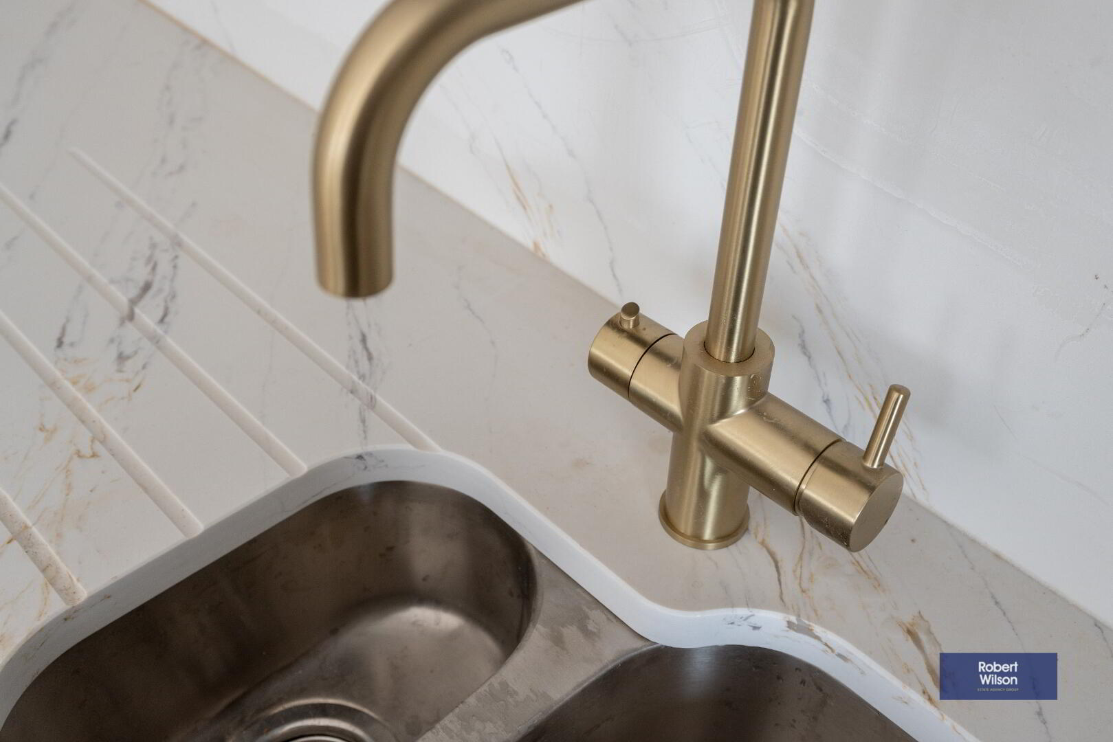 2.80m x 2.60m (9' 2" x 8' 6") Range of high & low units in grey, stainless steel sink unit with mixer tap, "Quartz" worktops & upstands, space for washing machine, broom cupboard, radiator, access to loft.