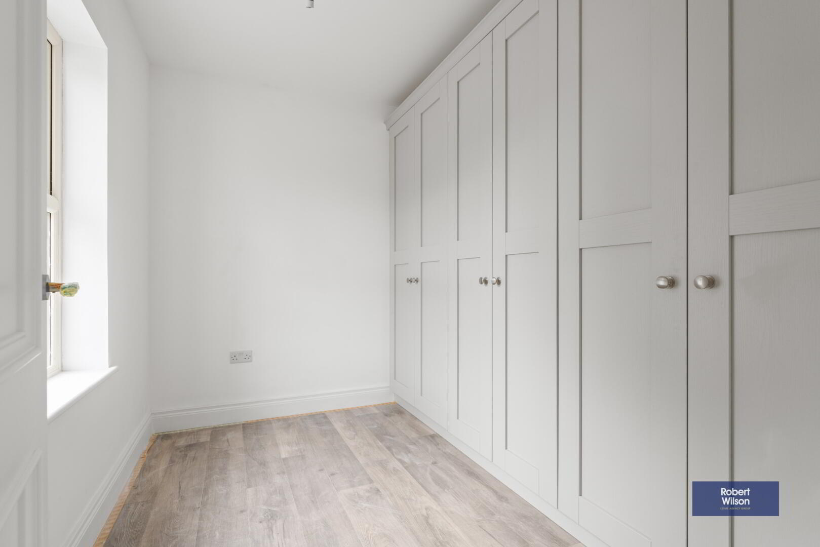 4.65m x 3.46m (15' 3" x 11' 4") Wood laminate flooring, facilities for wall mounted TV. Walk-in dressing room with fitted robes, radiator.