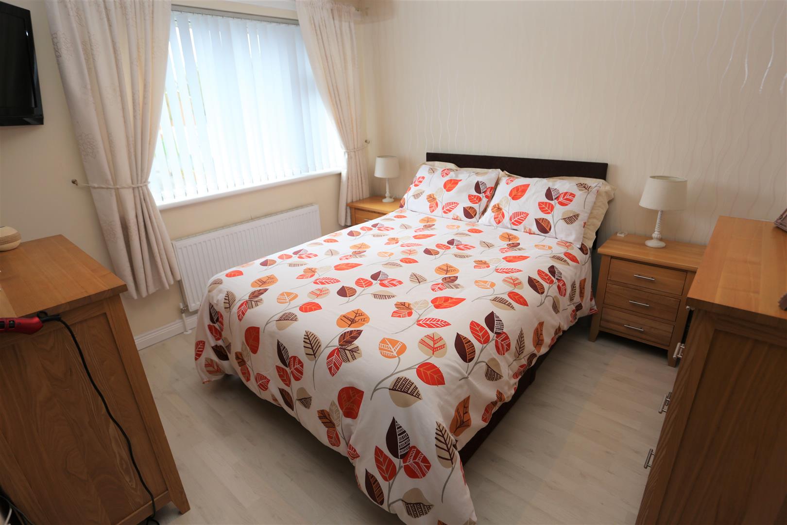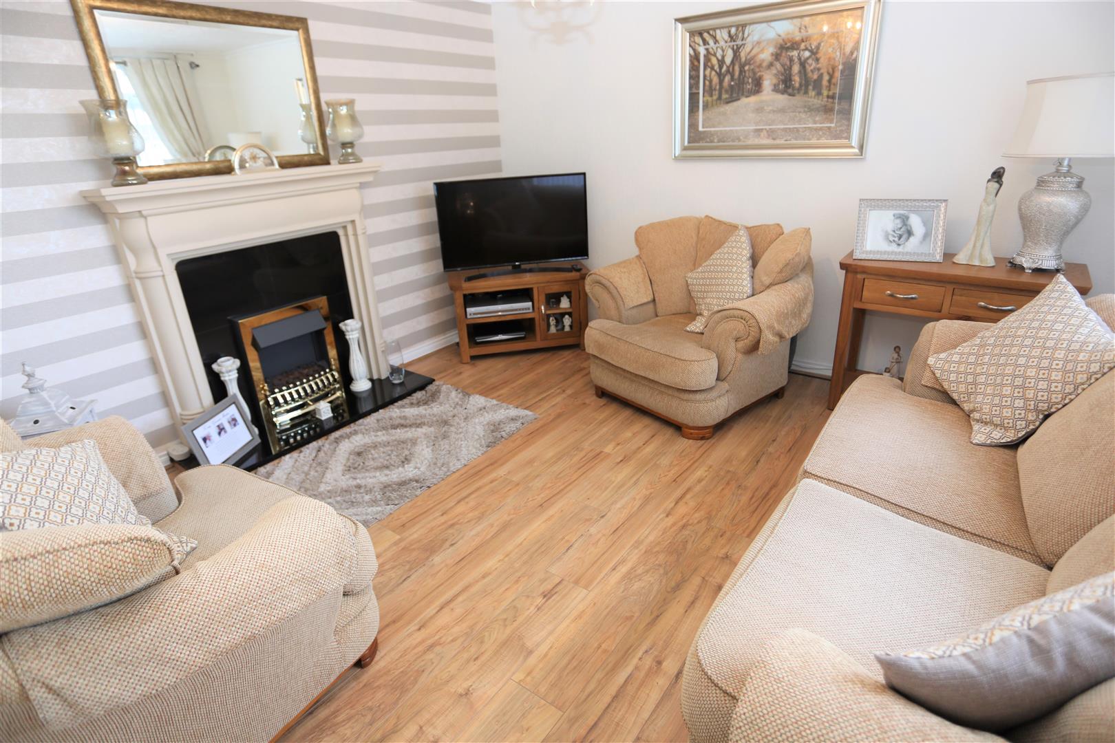 Feature fireplace with electric inset. Wooden flooring. Double panel radiator.