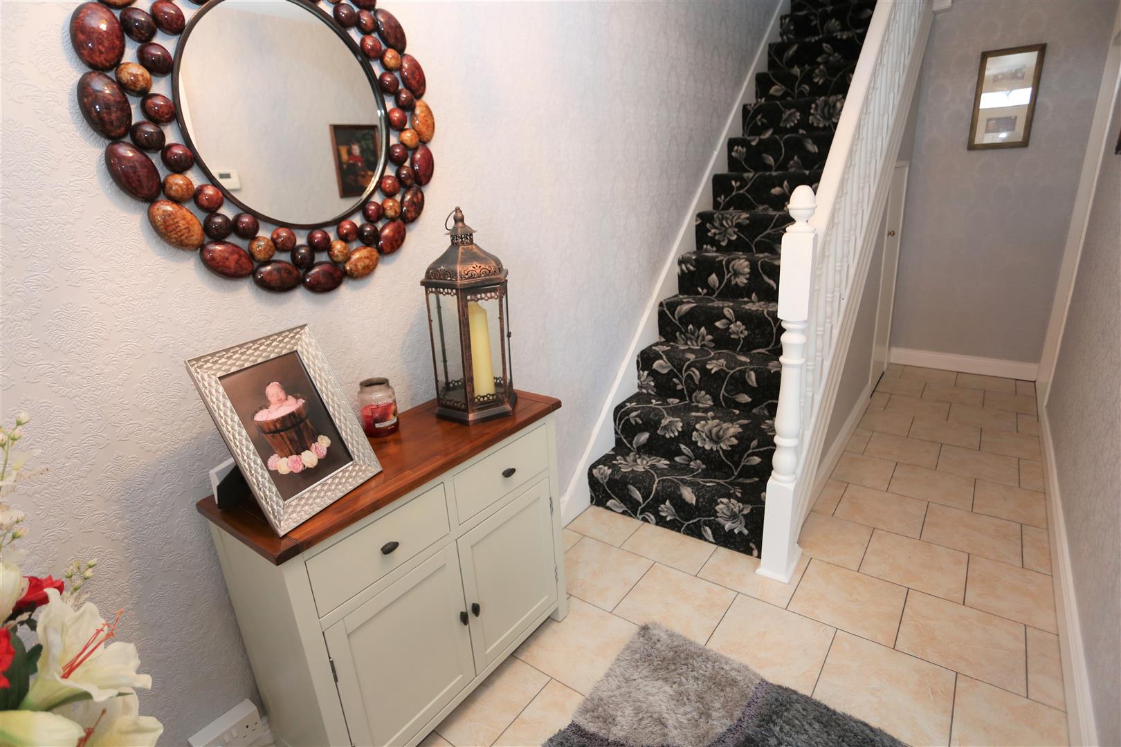 Via PVC door. Tiled flooring. Double panel radiator. Under stair storage. Access to first floor via staircase.