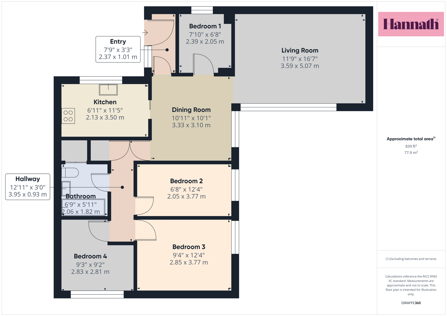 Hallway 12'11 X 3'0 (3.94m X 0.91m)