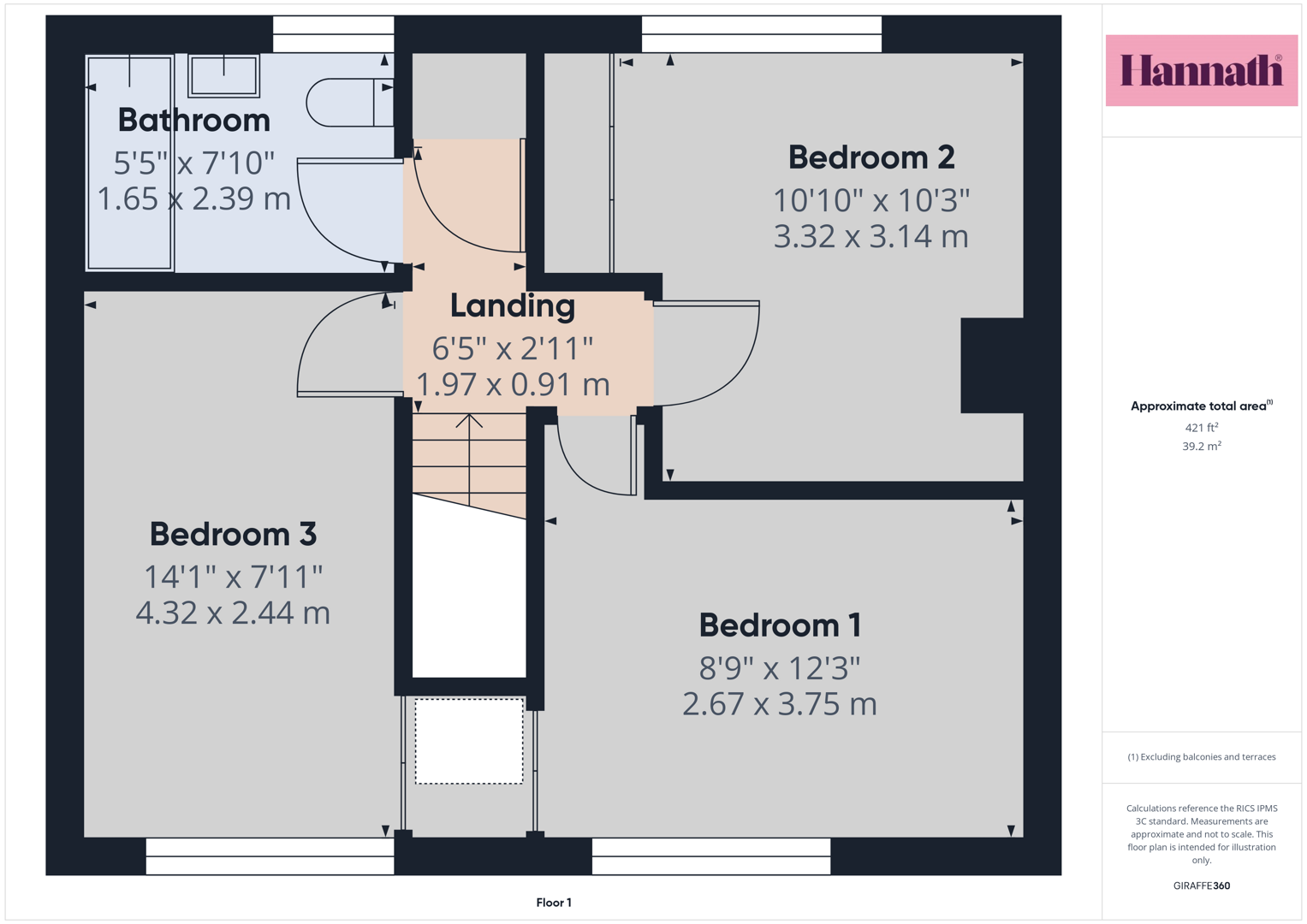 Landing 6'5 X 2'11 (1.96m X 0.89m)