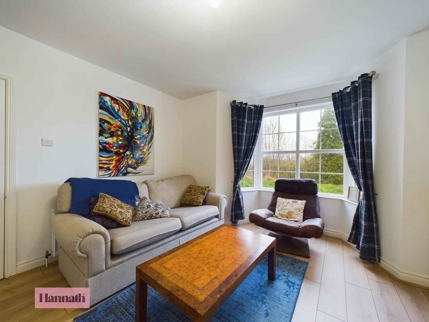 Wood laminate flooring, x2 double panel radiator, wood burning stove, double patio doors to rear