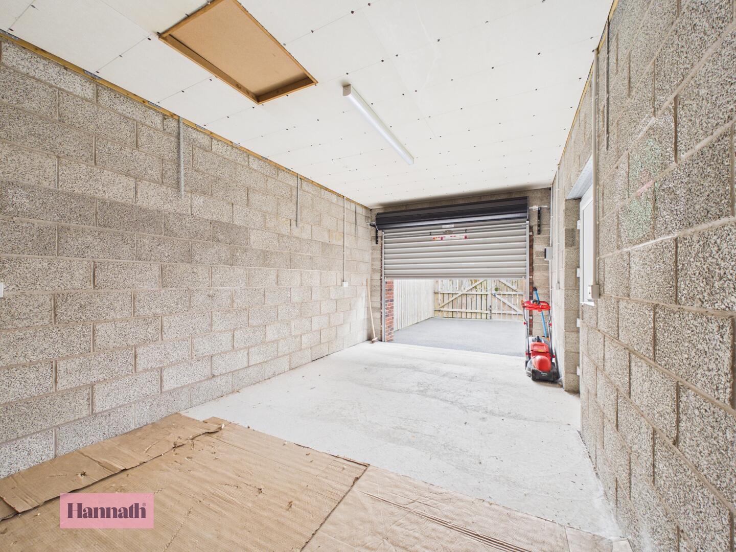 The detached garage is a sizeable garage with a roller door and side access door, offering secure parking or useful storage space. The interior is unfinished with block walls and a concrete floor, ready to be adapted to your needs.