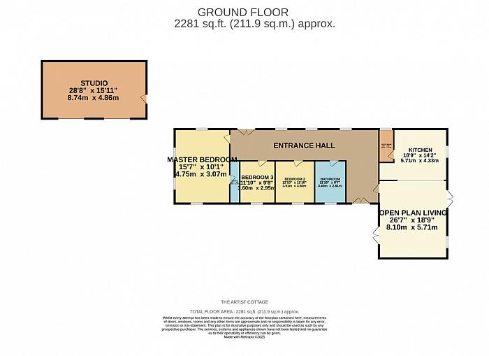 The Artist's Cottage, a single storey dwelling comprises of entrance hallway with raised ceiling with skylight, splendid open plan lounge with dining area and dual aspect taking in both the stunning views of the gardens and countryside to the rear and fabulous sea views to the front, French doors lead out to the landscaped rear gardens, and is open to the spacious modern fitted kitchen and utility room. The property has three double bedrooms, master with ensuite and sea views and seperate contemporary family bathroom with freestanding bath.