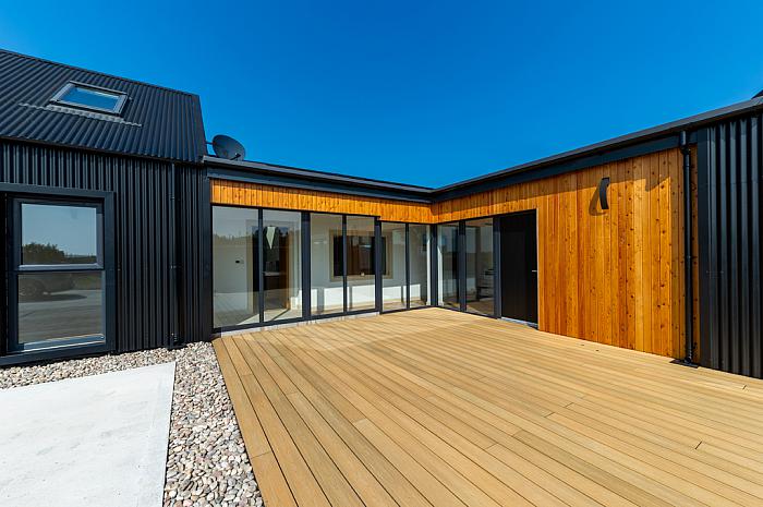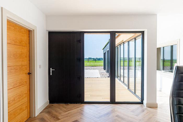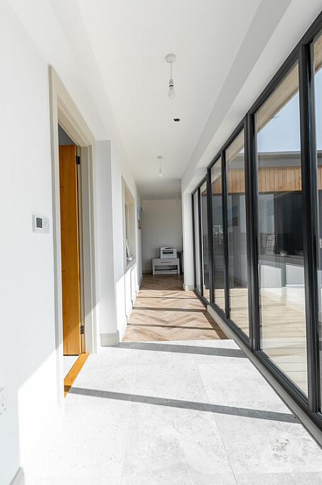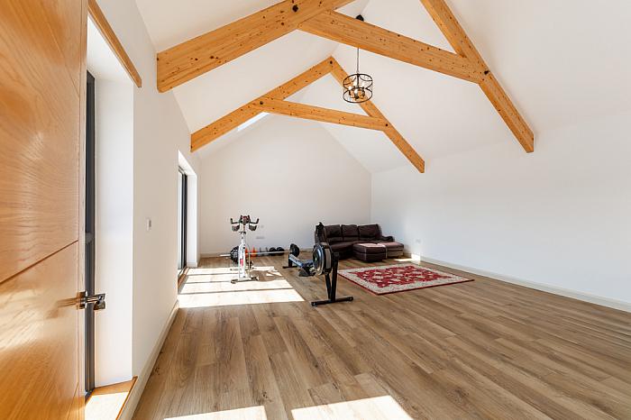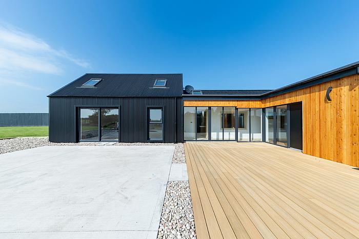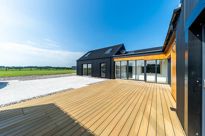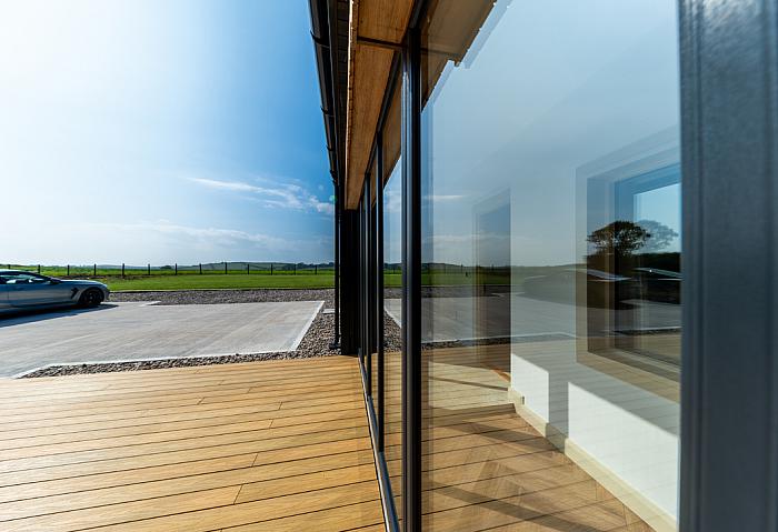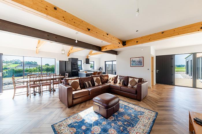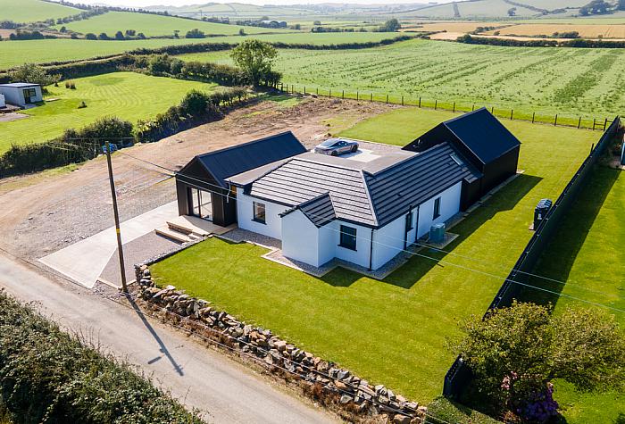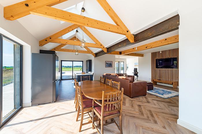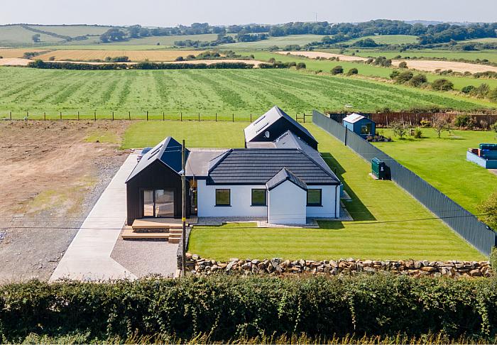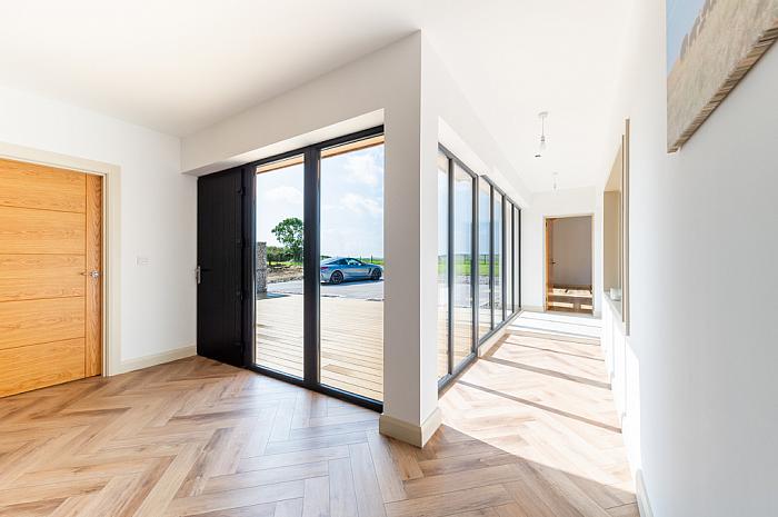 The property is set on a prime site with fabulous views of the surrounding countryside and with many extra features provides a unique contemporary living space in a beautiful country location. Finished to the highest standard with no expense or attention to detail spared the property comprises of fabulous dual aspect bespoke open plan luxury fitted kitchen with quartz work surfaces and splash backs, centre island, Franke sink and taps, Bosch 5 ring gas hob, Bosch double oven, Oak LVT flooring and feature exposed trusses open plan to family area. The glazed walkway overlooks the gardens and rear sun terrace and leads to the extensive lounge area, or possible master bedroom, again with exposed trusses and views overlooking the surrounding area. The three well portioned bedrooms, one with dressing area and two contemporary bathroom suites finish off this exceptional home. Externally the property is set on a generous sized plot with ample car parking, landscaped rear gardens and composite decked sun terrace with outstanding views, the perfect place to sit and unwind in these very special surroundings.