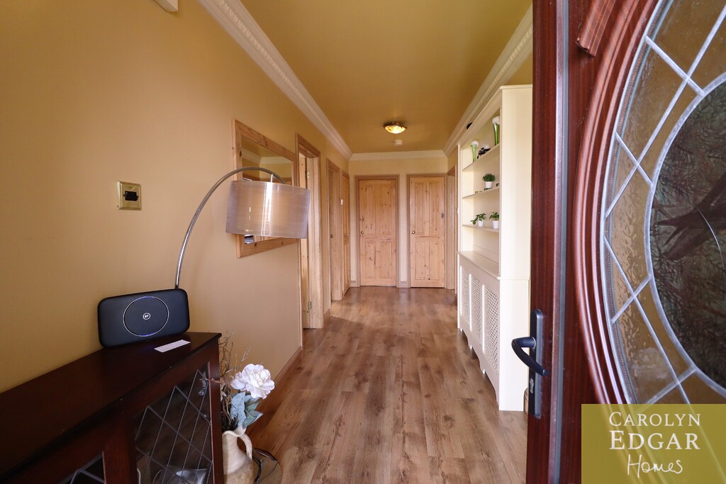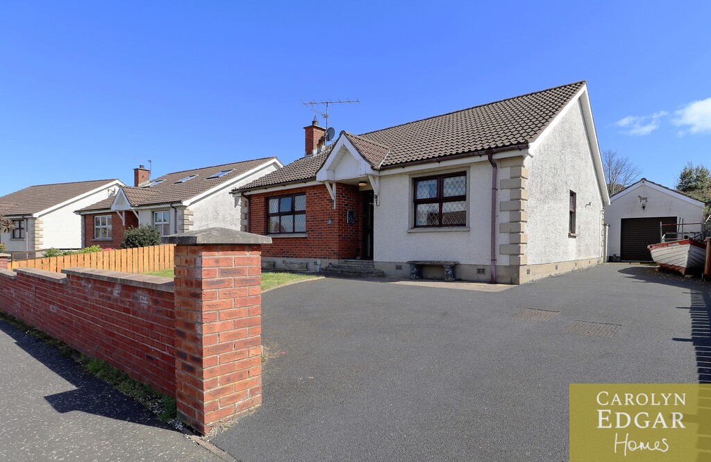 Set in a sought after but quiet residential area this property is set on a great site with delightful tiered gardens to the rear with views over to the lough and to Tullyward Windmill from the raised decked sun terrace and will appeal to a wide range of buyers due to it central but quiet location. Internally the property comprises of spacious entrance hall, beautifully presented and spacious living room with feature fireplace with gas fire inset, large solid oak kitchen with an abundant range of high- and low-level units and built in appliances, leading out the sunroom overlooking the sunny rear gardens and paved sun terrace. The property has three generous sized bedrooms and spacious bathroom. Outside the property has private gardens to the front laid in lawn with large tarmacked driveway with parking for several cars and access to garage and spacious tiered rear gardens with paved patio area, mature trees and shrubs